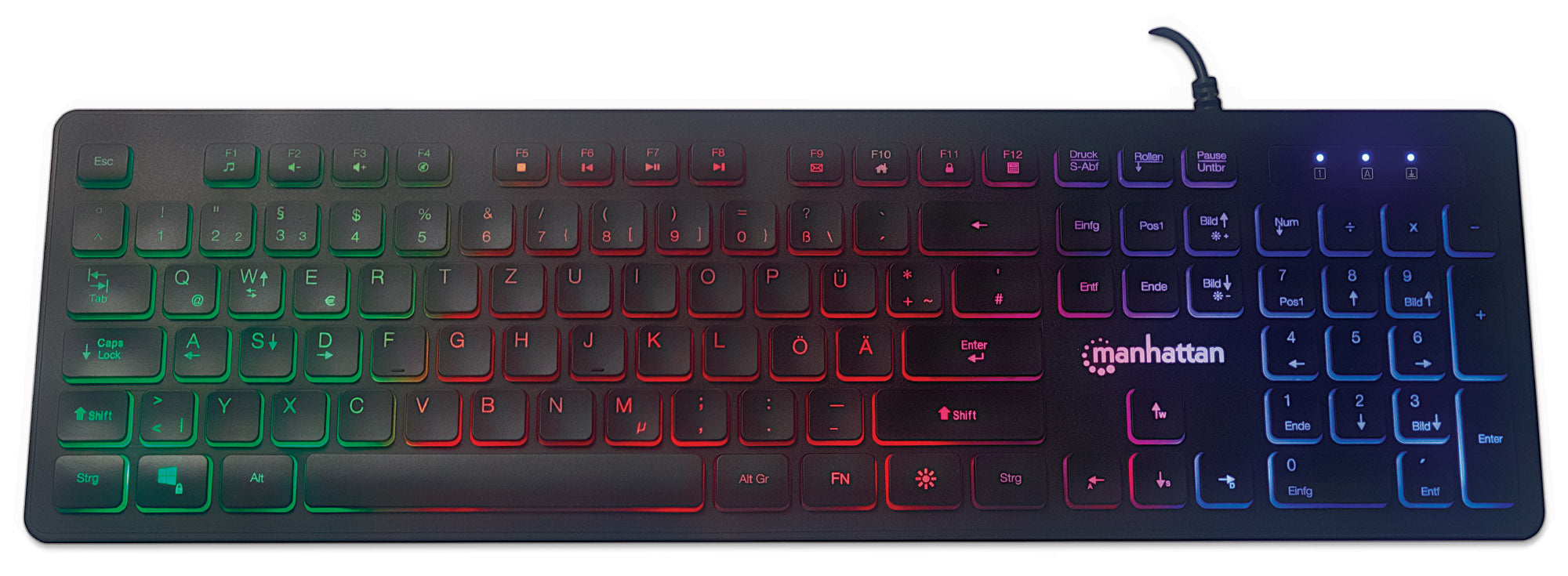 12 tasti multimediali/funzione, USB, retroilluminata, indicatori LED per Numero, Scroll e Bloc Num, Nera