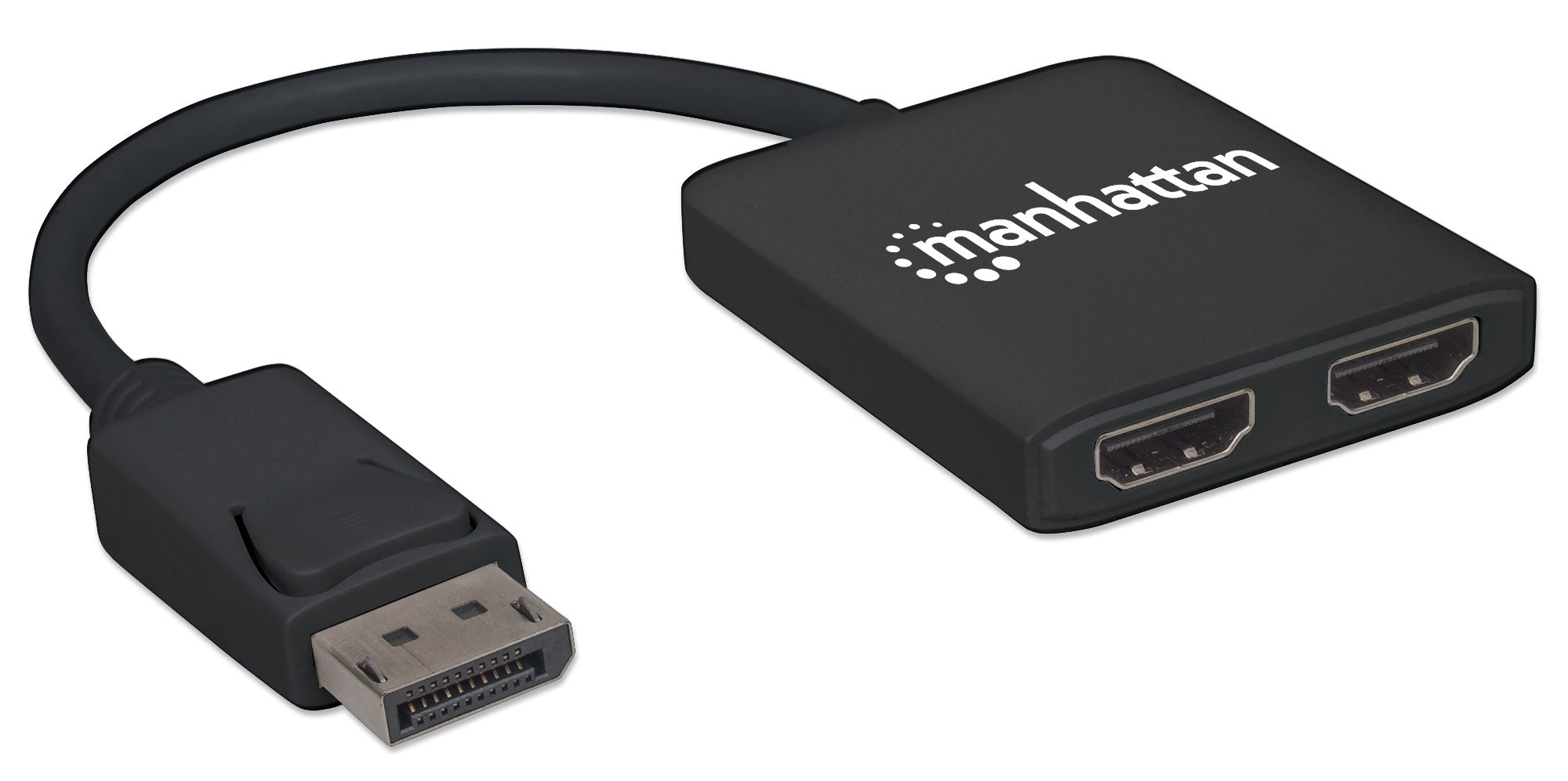 DisplayPort Maschio a due Femmine HDMI; Supporta modalità Mirror, Extended e Video-Wall; 4K@30Hz; Alimentato via USB, Nero