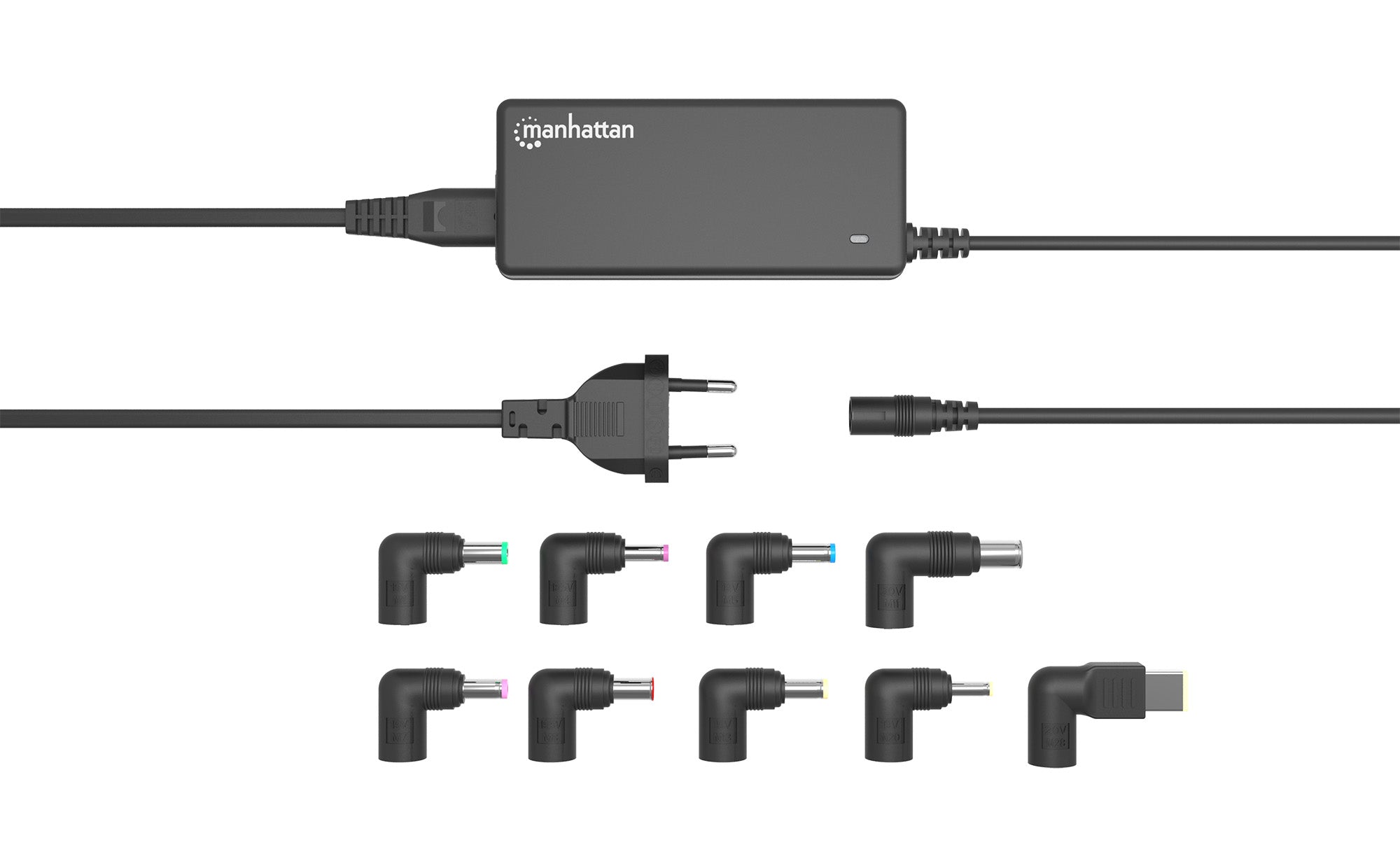 Adattatore di alimentazione con nove connettori e voltaggio universale, compatibile con la maggior parte dei notebook, ideale come alimentatore sostitutivo, include cavo di alimentazione AC EU staccabile, nero