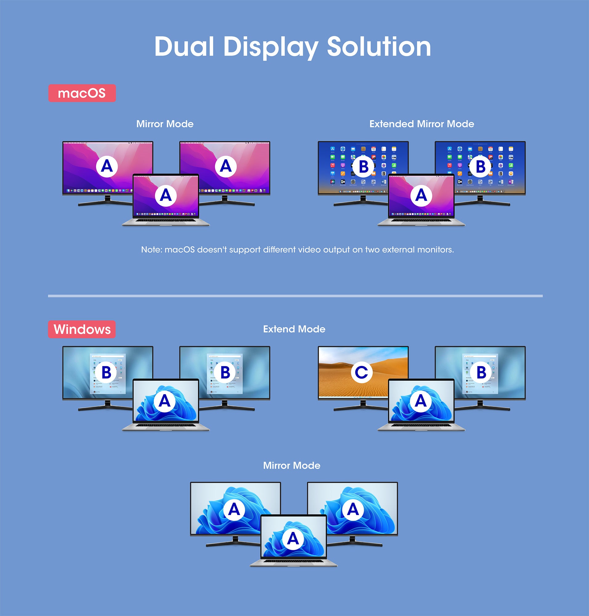- Usa tecnologia Multi-Stream Transport (MST) per modalità di visualizzazione su Windows® (Mirror o Fully Extended) e Mac® (Mirror o solo Extended Mirror)