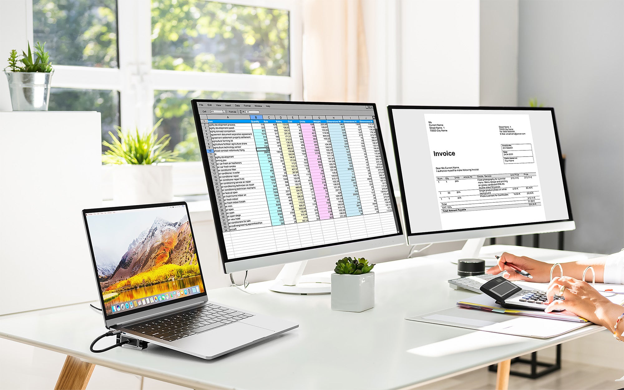 - Collega il tuo laptop agli schermi, alla rete e ad altre periferiche mentre ricarichi i tuoi dispositivi