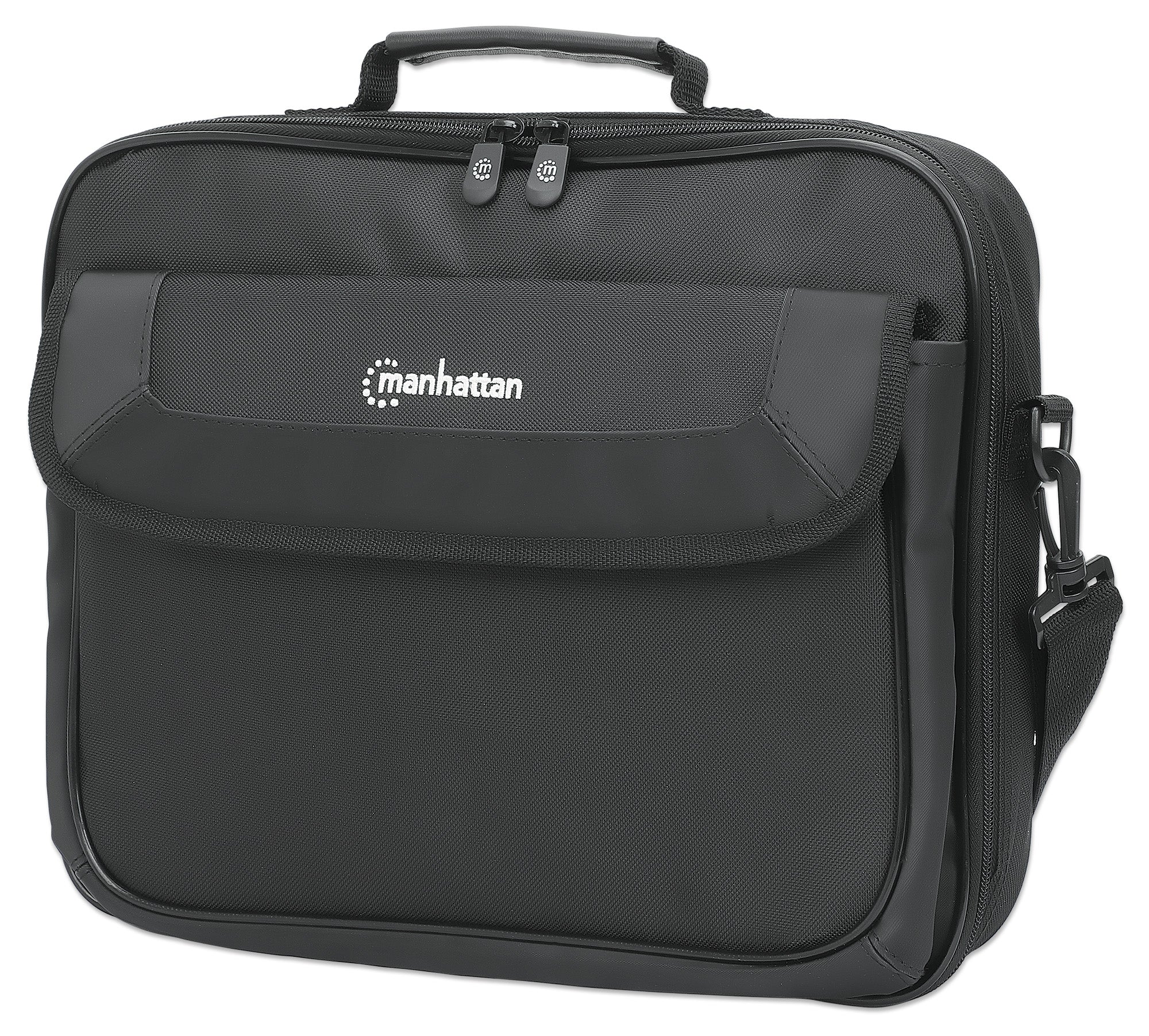 Apertura a conchiglia, indicata per la maggior parte dei laptop da 14.1", spazioso comparto imbottito per notebook, tasche frontali, posteriori e interne, tracolla, maniglia, nera