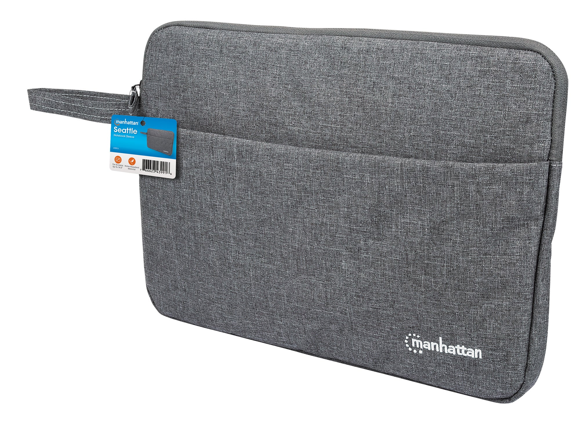 Inserimento dall'alto; indicato per notebook fino a 14.5", imbottitura premium, resistente all'acqua, uno scomparto per notebook, una tasca frontale, grigia