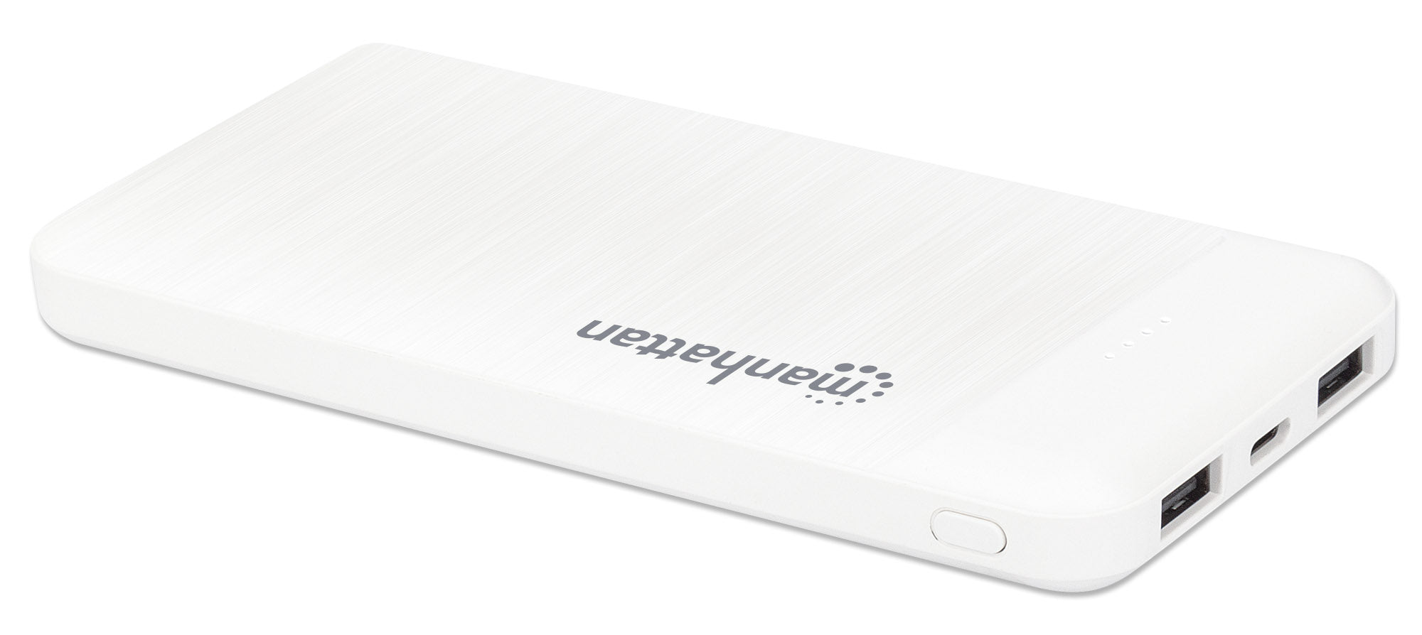 Due porte USB-A in uscita (2.1 A e 1 A), due porte in ingresso (USB-C e Micro-USB, 2 A ciasucna), 10.000 mAh, Bianco