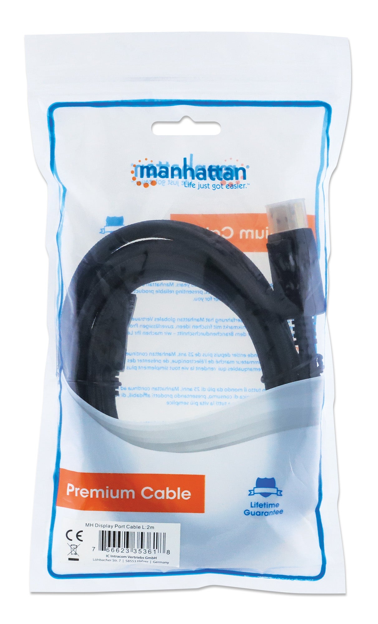 DisplayPort maschio a maschio, 2 m, supporta 4K a 144 Hz, HDR, contatti placcati in oro, design intrecciato con fermi, nero