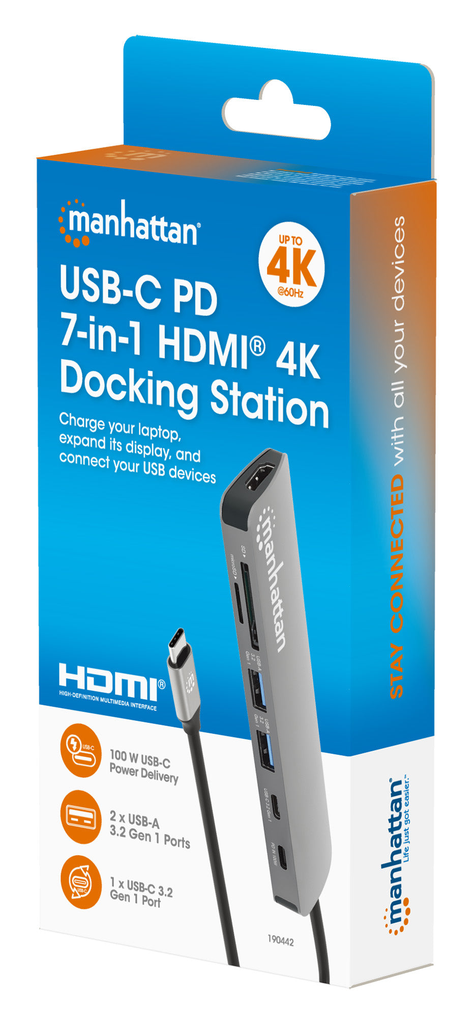 • Ricarica il tuo laptop tramite USB Power Delivery (PD) fino a 100W; richiede un caricatore esterno PD - disponibile nella linea Manhattan