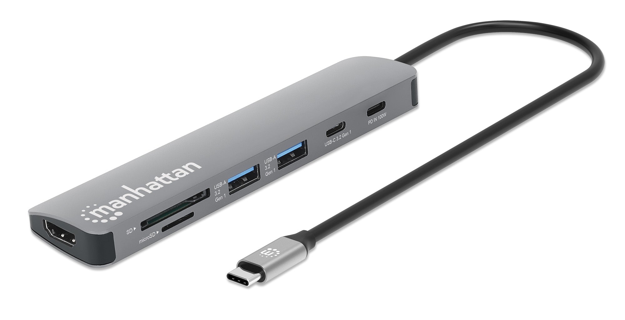 USB 3.2 Gen 1 Type-C maschio a HDMI (4K@60Hz), due USB-A (5 Gbps), USB-C Power Delivery (100 W), USB-C Data (5 Gbps), lettore memorie SD/microSD, Alluminio, Silver