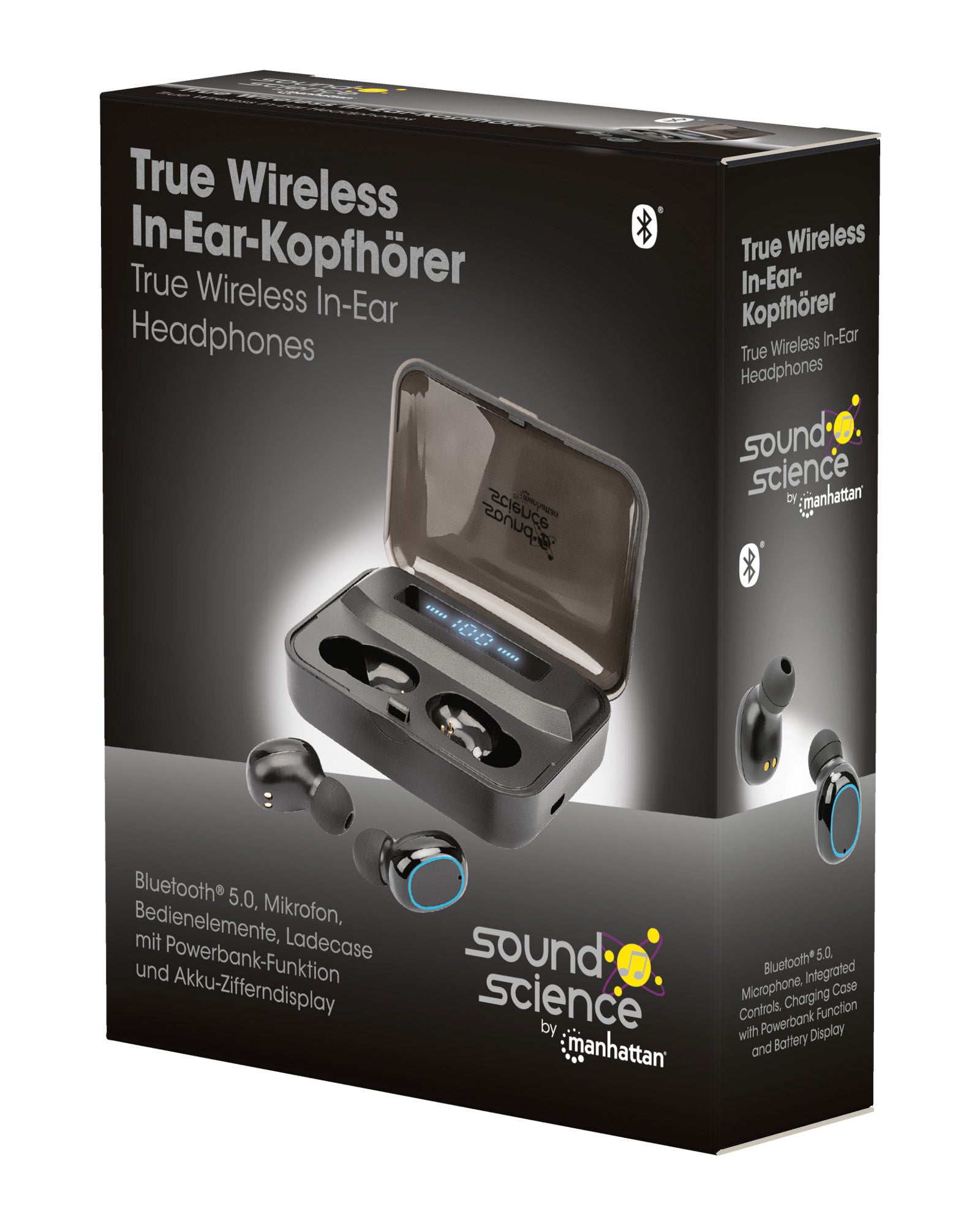 Bluetooth® 5.0, Microfono, Controlli integrati, Custodia di ricarica con funzioni di Powerbank, Nero