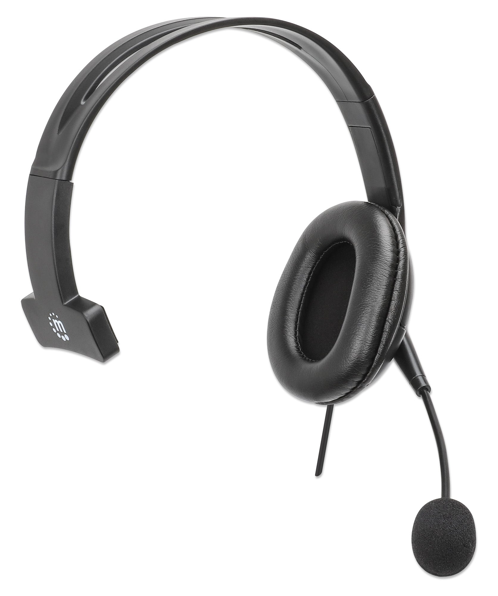 Design over-ear su un lato, cablato, connessione USB-A, controllo volume e disattivazione audio in linea, microfono regolabile, nero