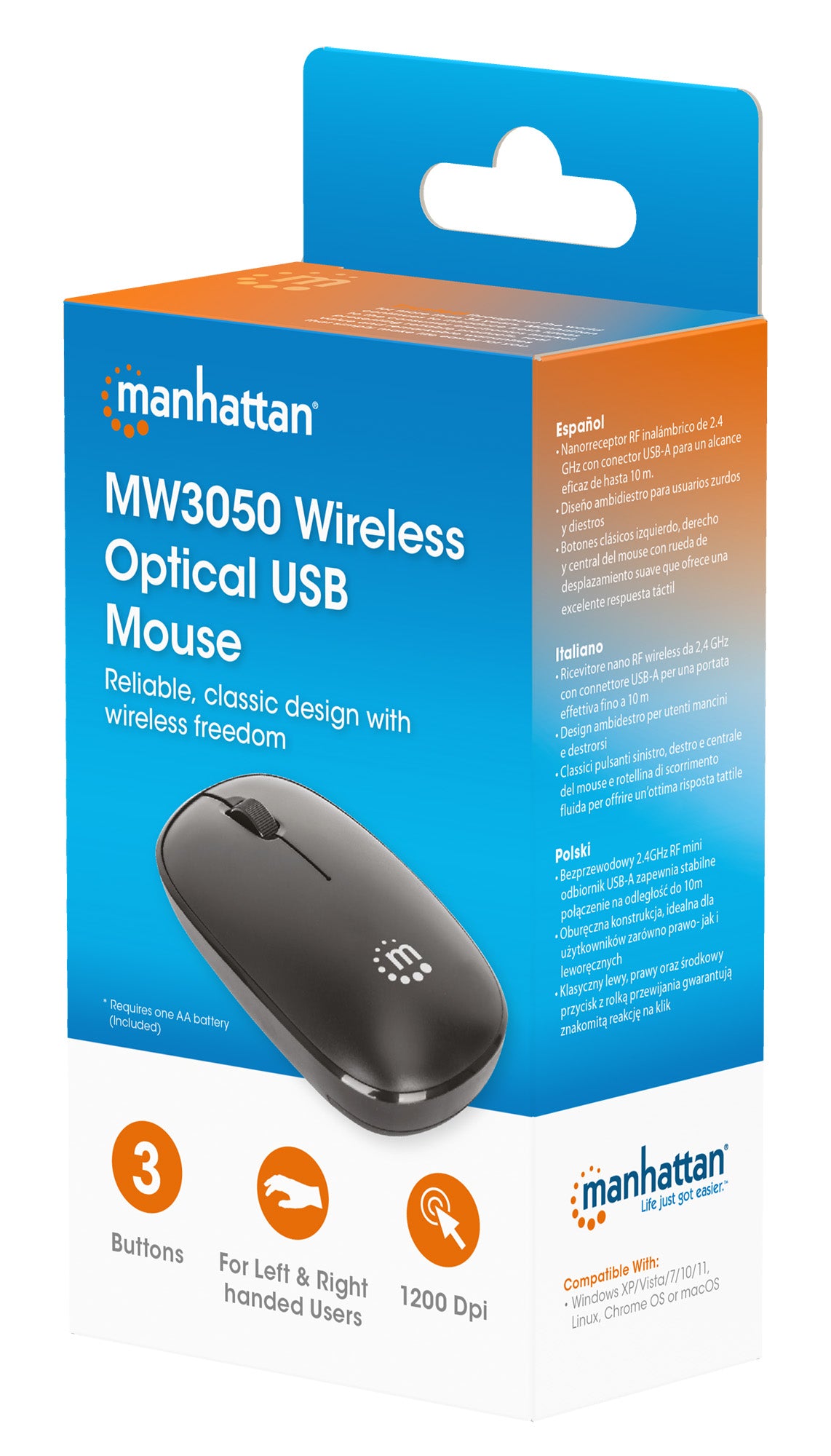 Ricevitore USB-A Nano, tre tasti con rotella scroll, 1200 dpi, ambidestro, nero
