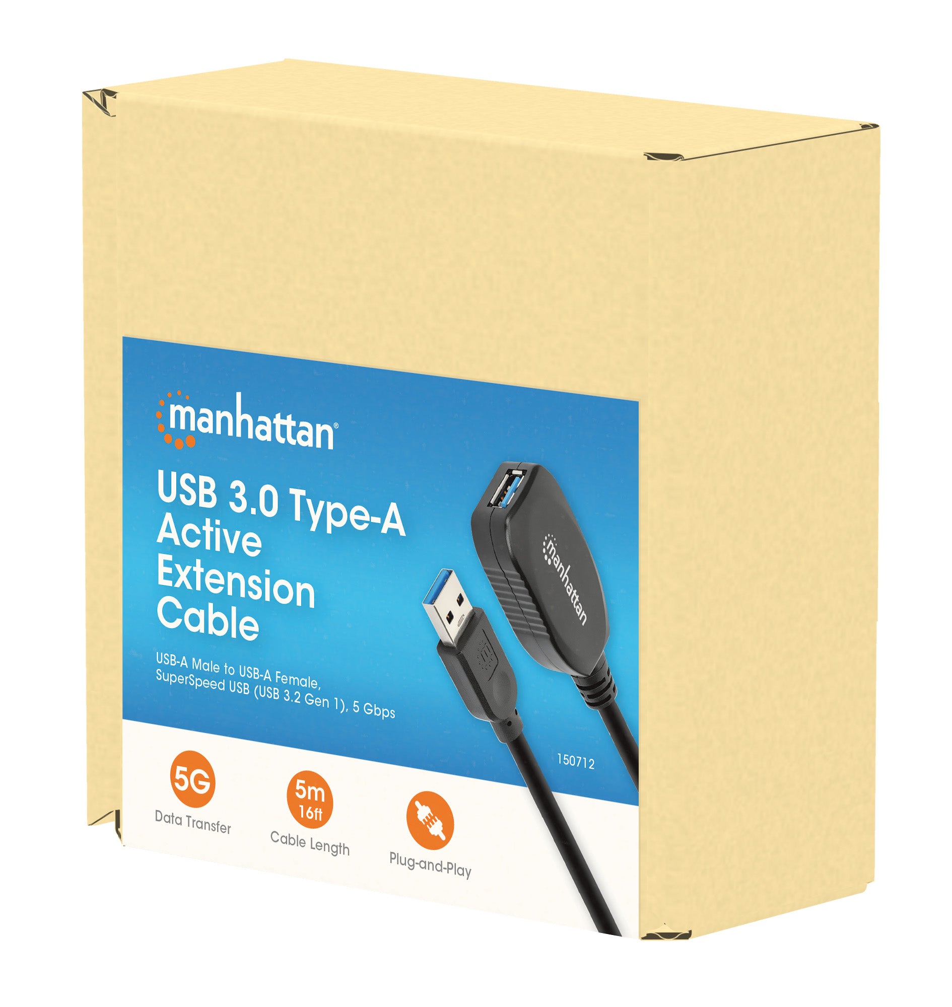 USB-A maschio a USB-A femmina, 5 m (16 piedi), SuperSpeed ​​USB (USB 3.2 Gen 1), 5 Gbps, nero