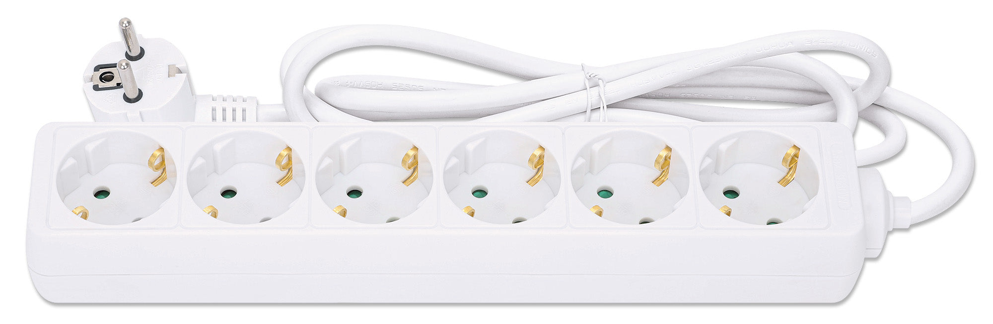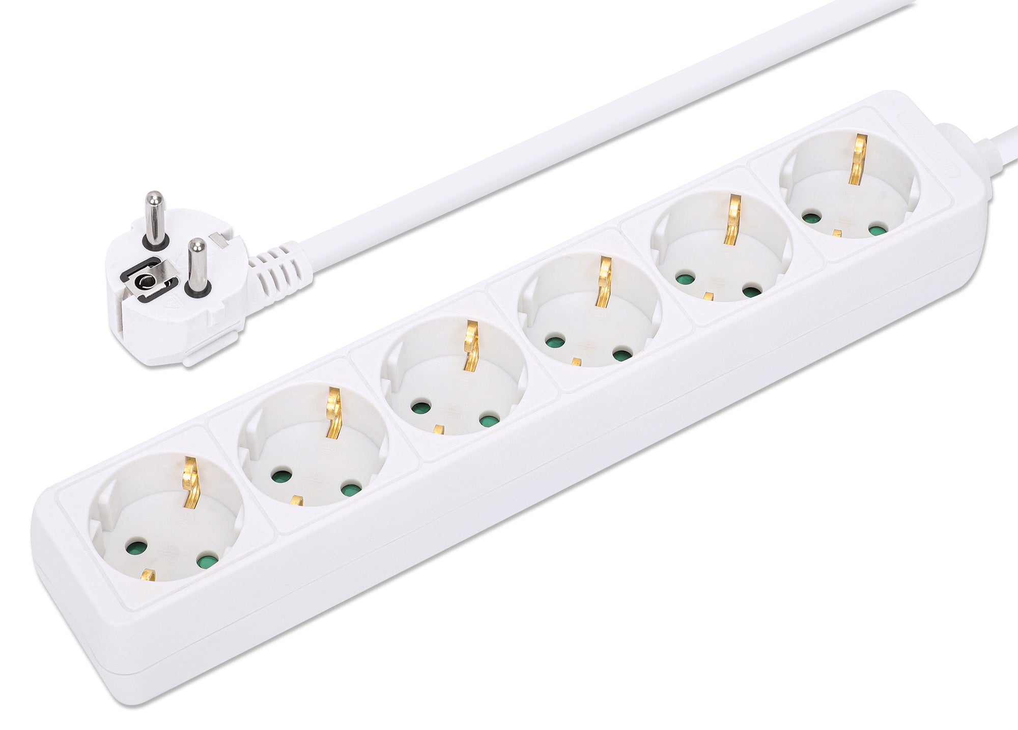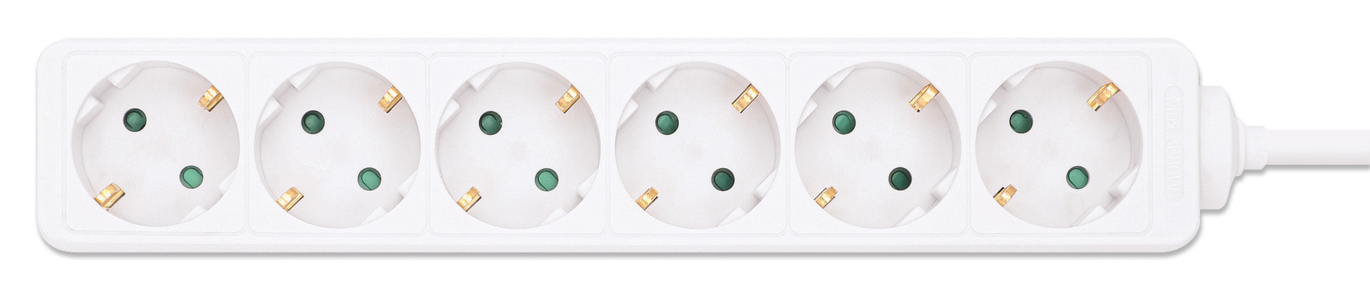 Sei prese tedesche tipo F, cavo incorporato da 2 metri con spina tipo F, 16 A, colore bianco