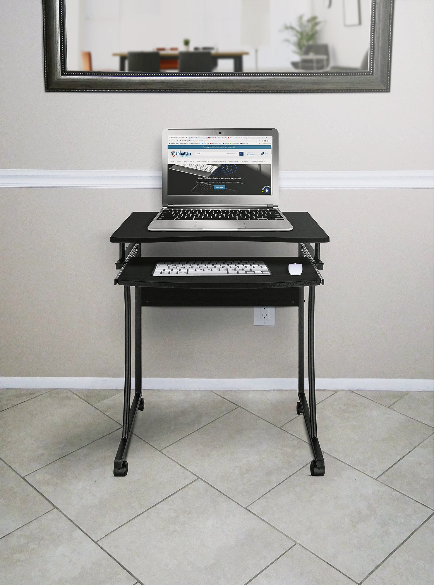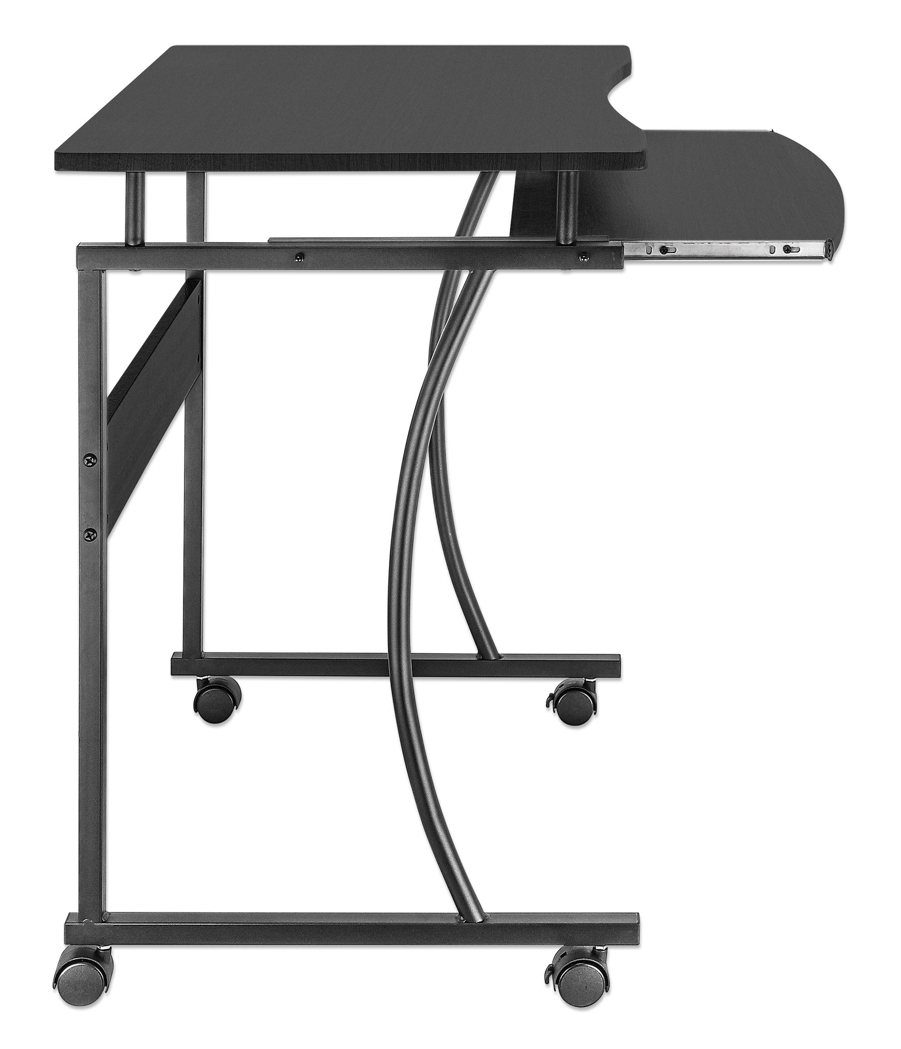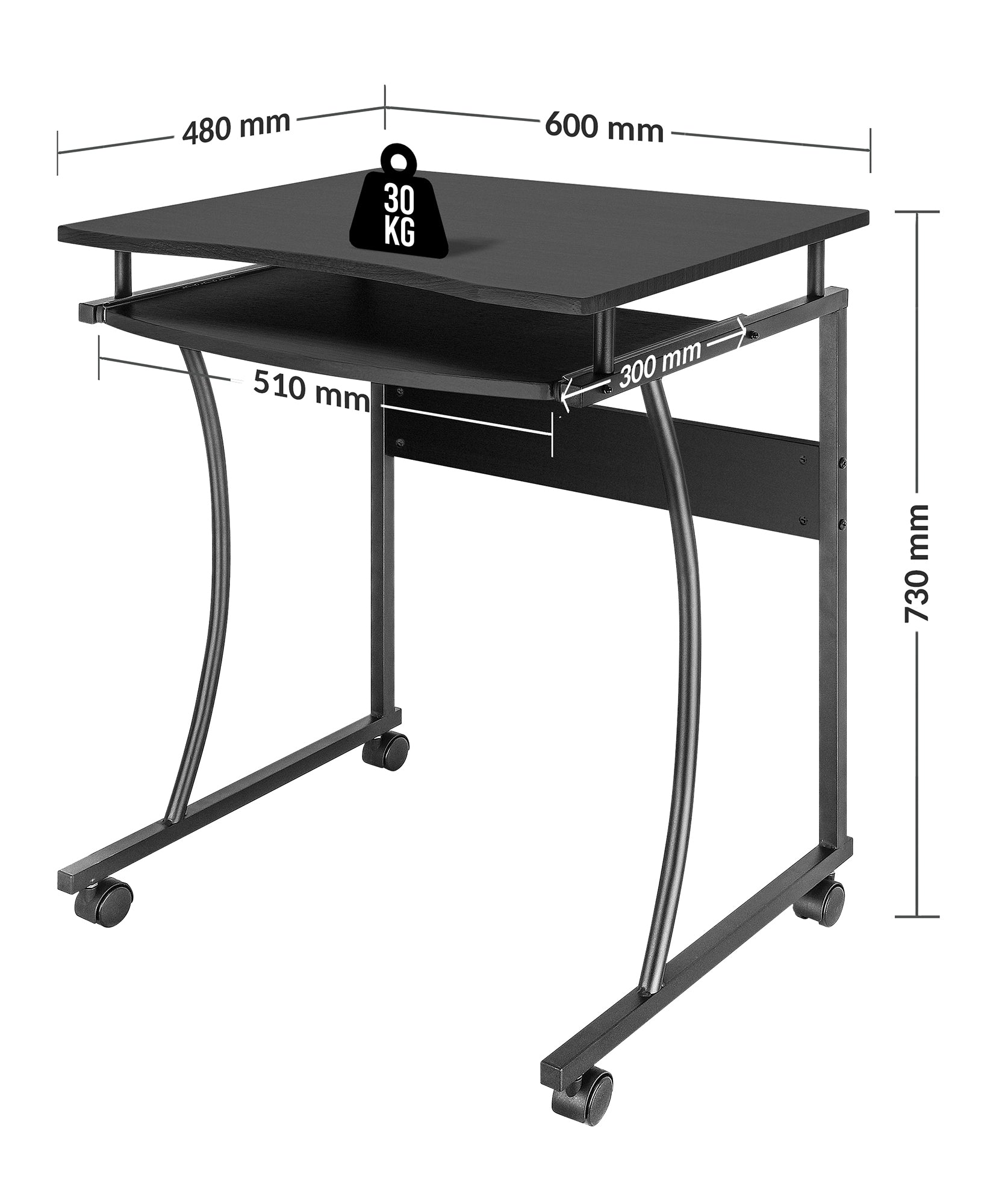 Scrivania mobile con ripiano estraibile per tastiera e mouse, quattro ruote, ideale per lo smart working e i piccoli spazi, nera