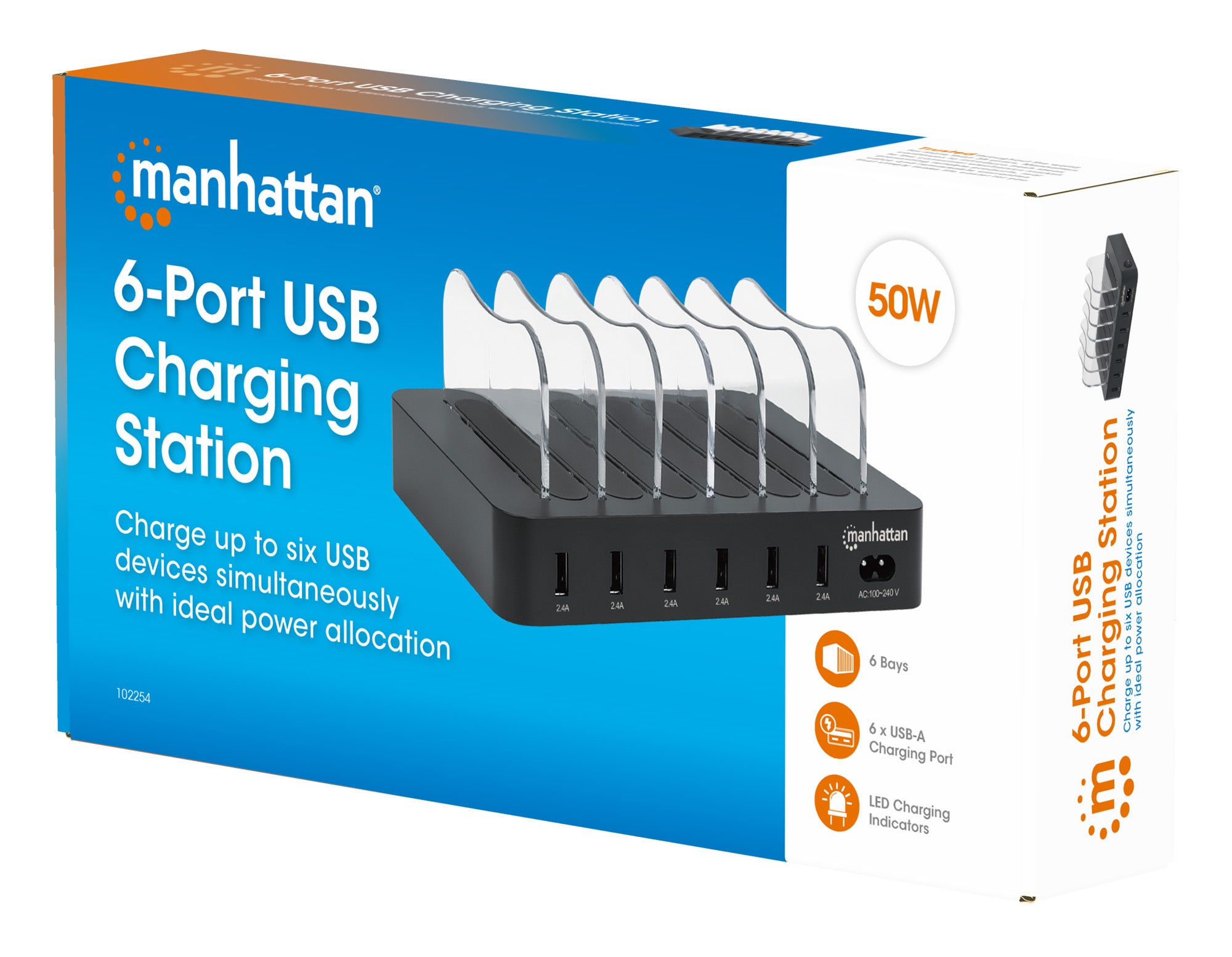 Sei porte USB-A, fino a 5 V / 2.4 A per porta, 50 W totali in uscita, nero