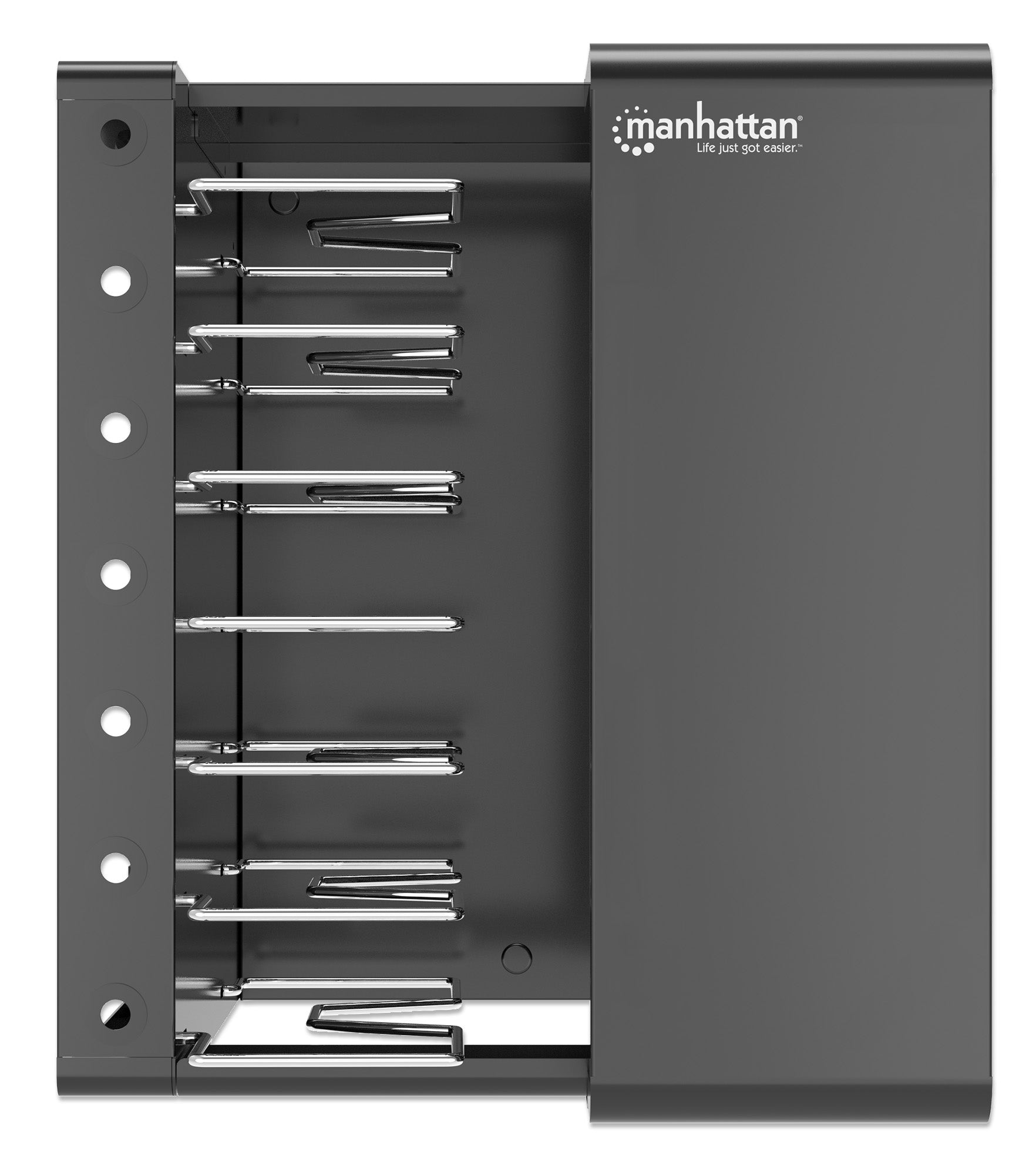 - Sette ampi slot per dispositivi, 402 (P) x 290 (L) x 50 (A) mm ciascuno, con gestione dei cavi integrata nei divisori