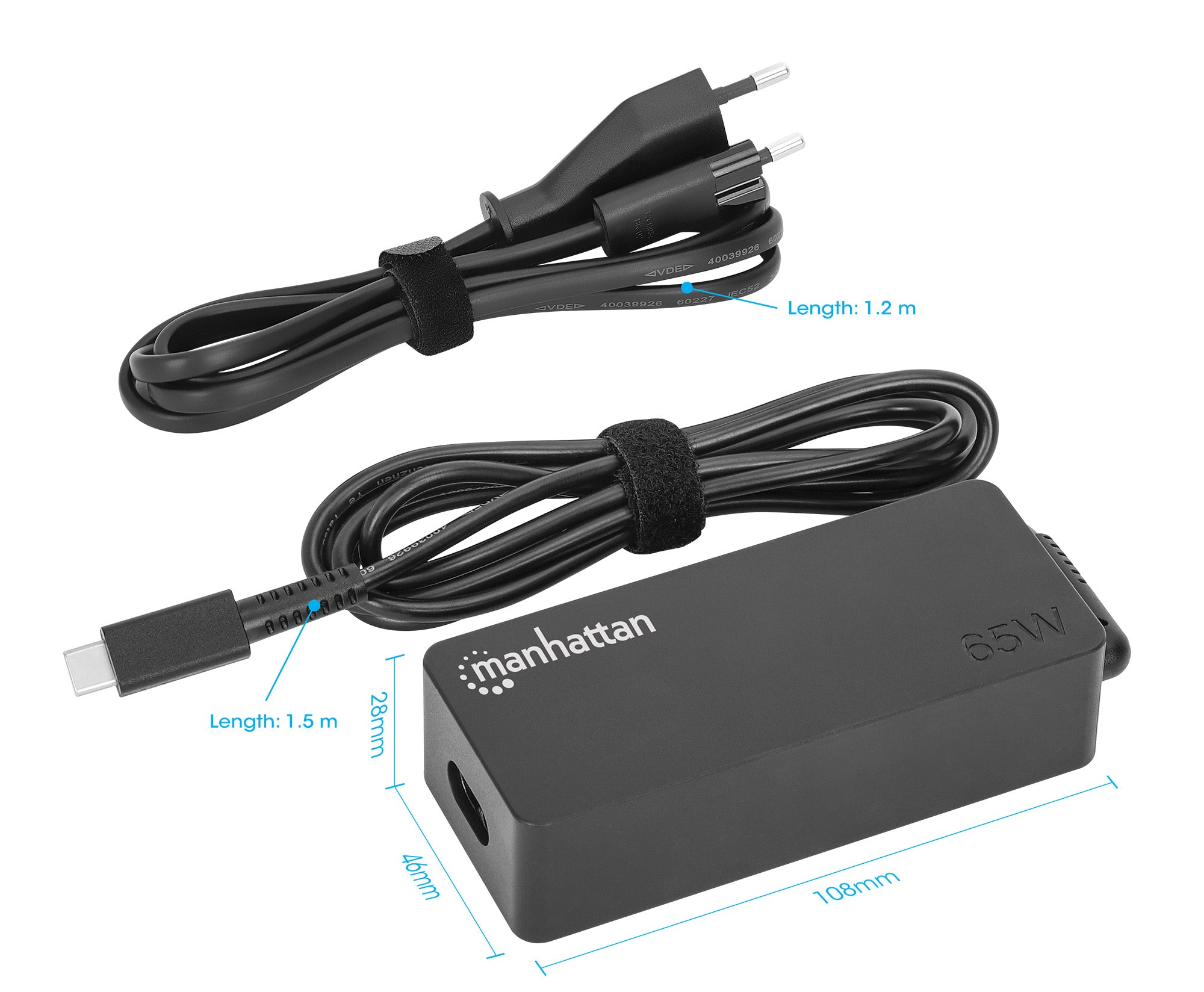 Alimentatore AC a Type-C, voltaggio universale compatibile con la maggior parte dei Notebook, ideale come secondo alimentatore o alimentatore sostitutivo, include cavo AC staccabile con spina europea e cavo USB-C PD incorporato, Nero