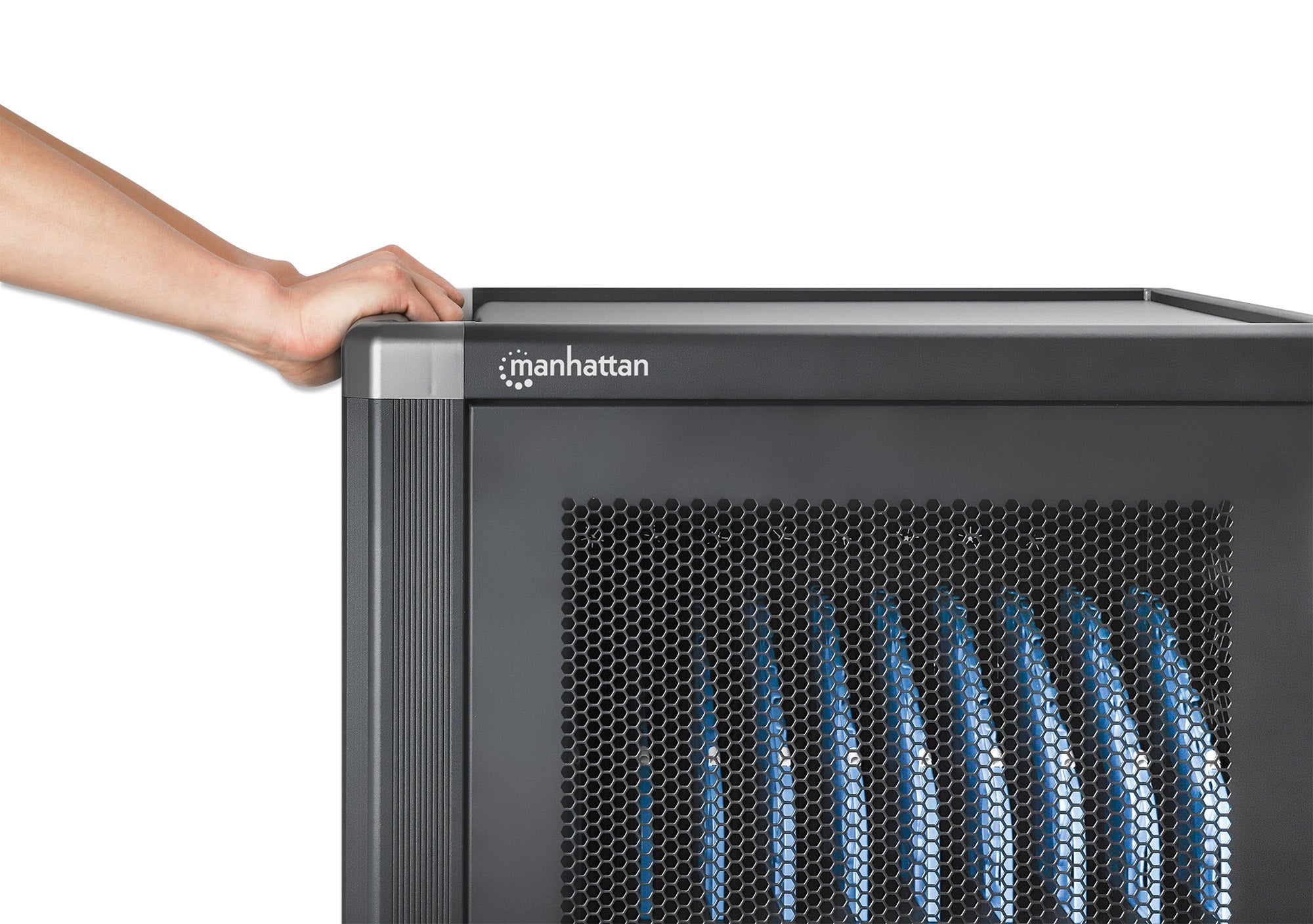 - Pad in plastica su ogni ripiano per prevenire scivolamenti e proteggere i dispositivi da graffi