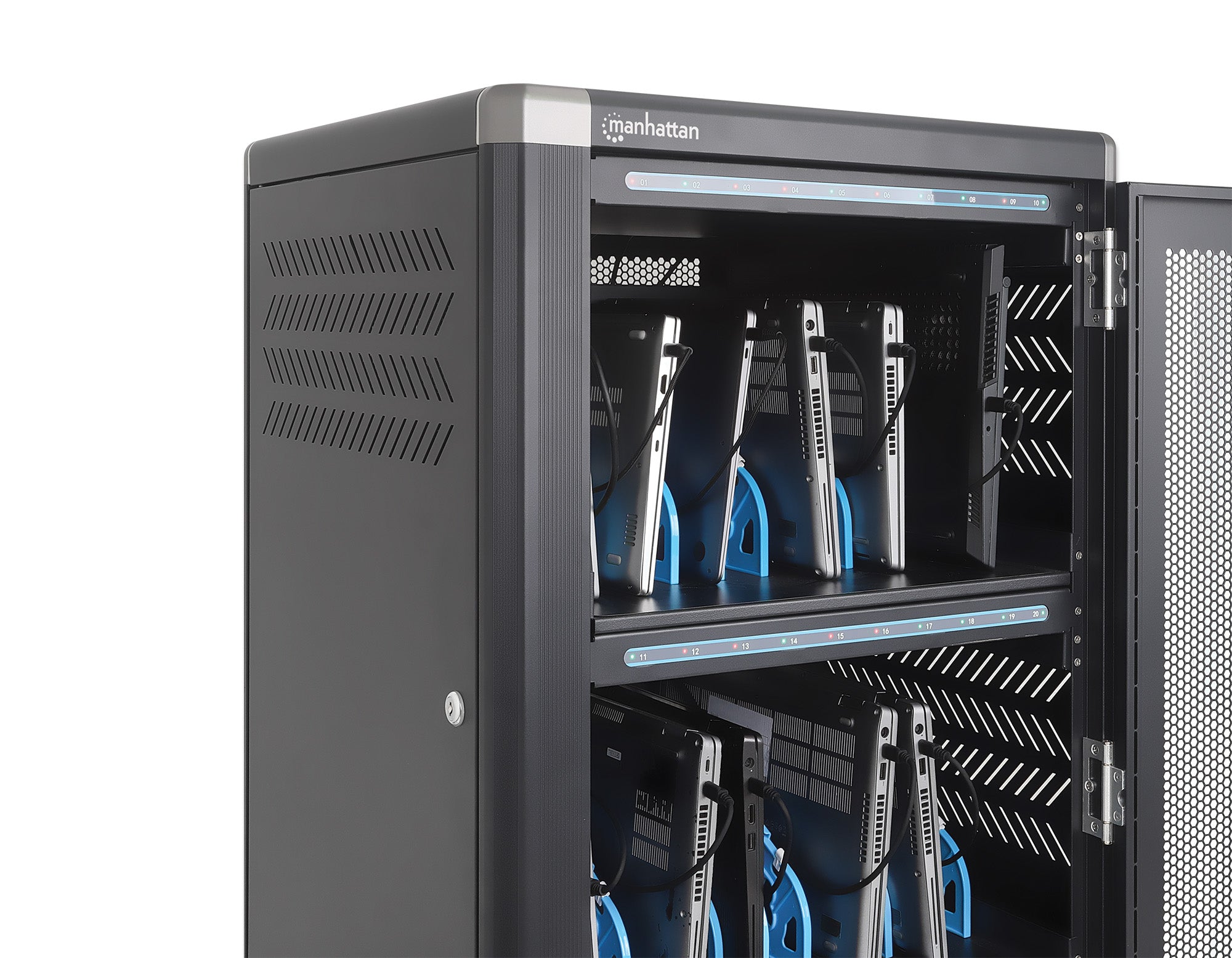 - 30 slot spaziosi per dispositivi, 400 (P) x 34 (L) x 275 (A) mm ciascuno, con gestione dei cavi integrata nei divisori