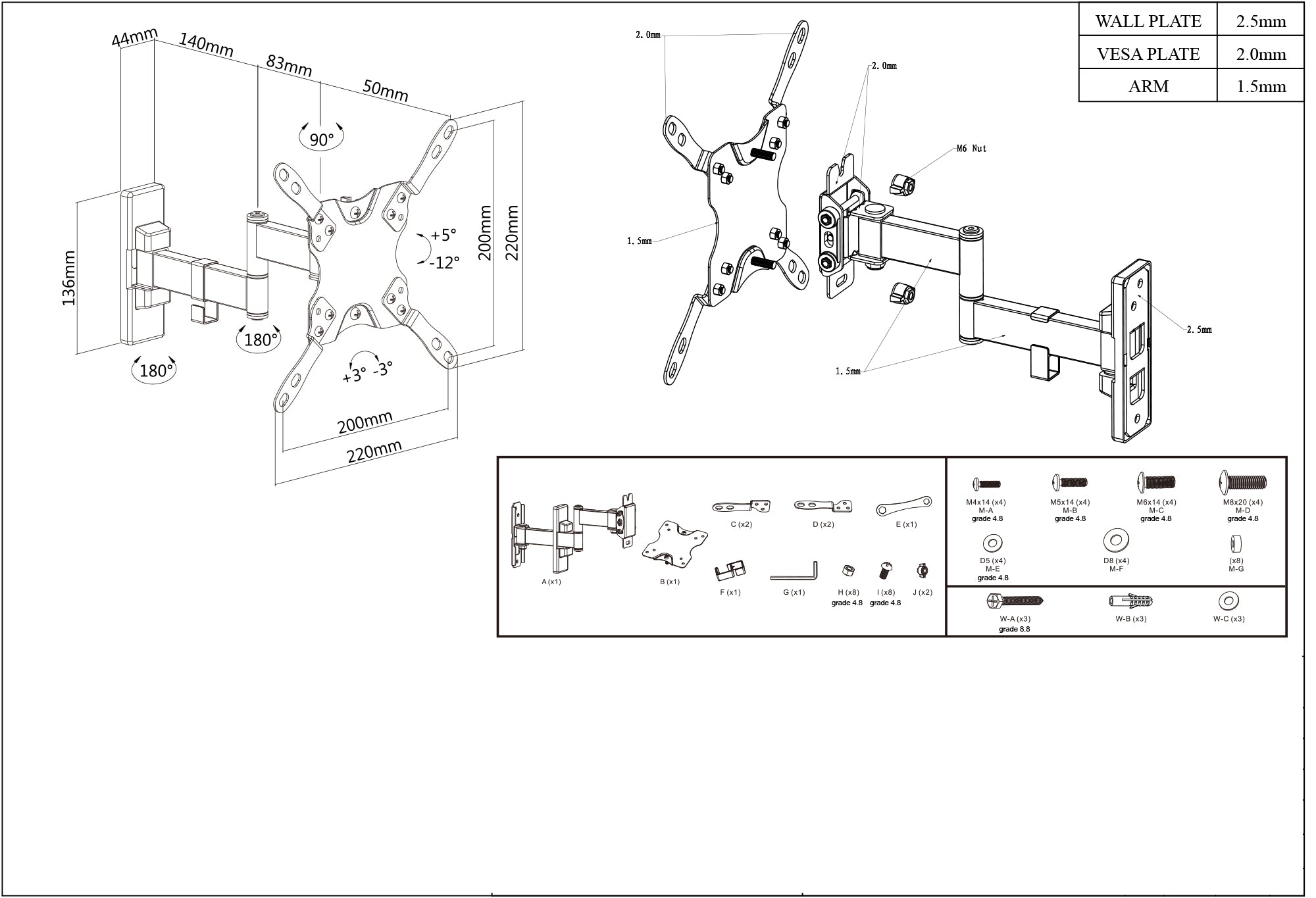 - Compatibile VESA 75 x 75, 100 x 100, 200 x 100 o 200 x 200