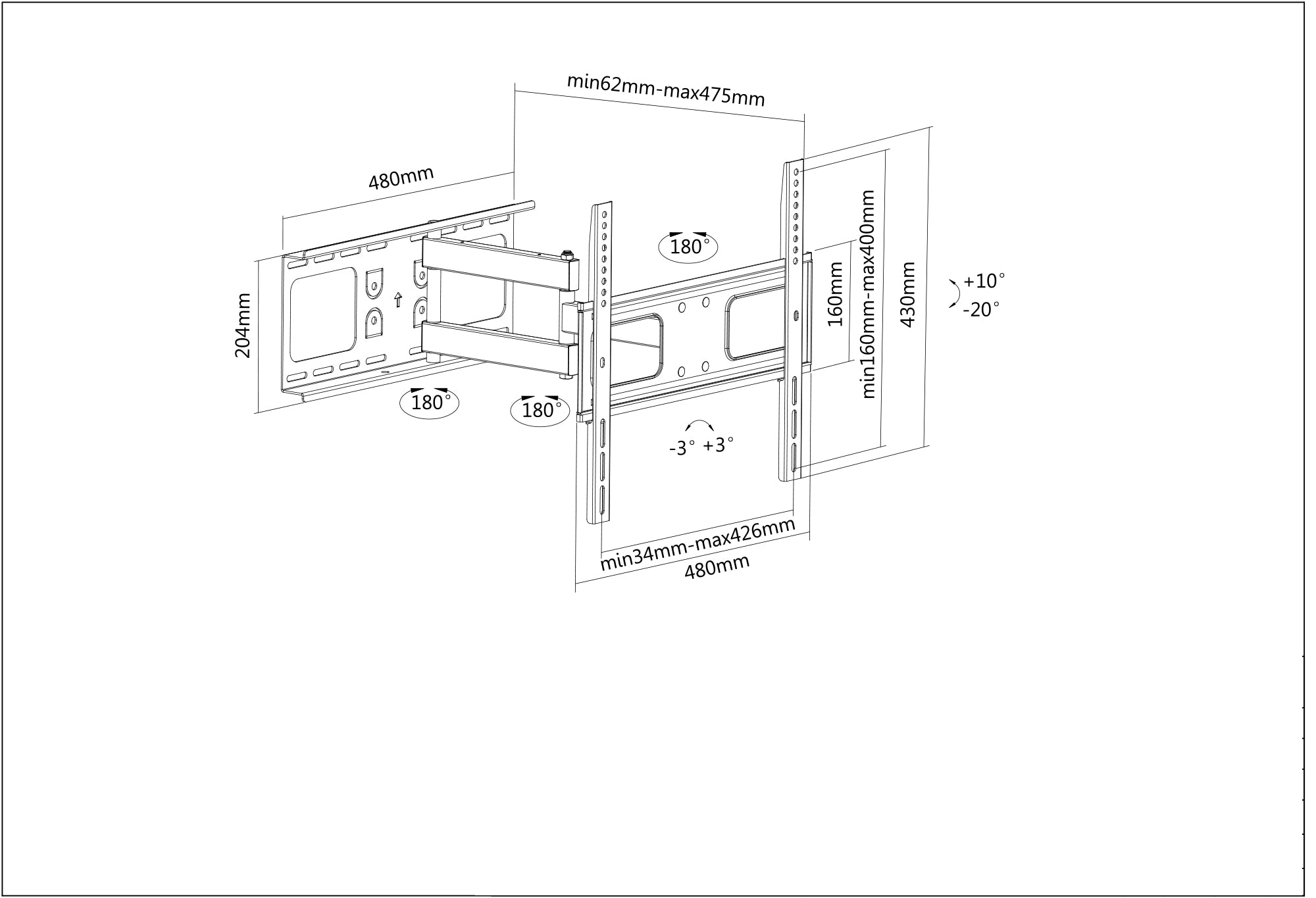 - Inclinazione da -20° a 10° e rotazione fino a 180° per una regolazione ottimale