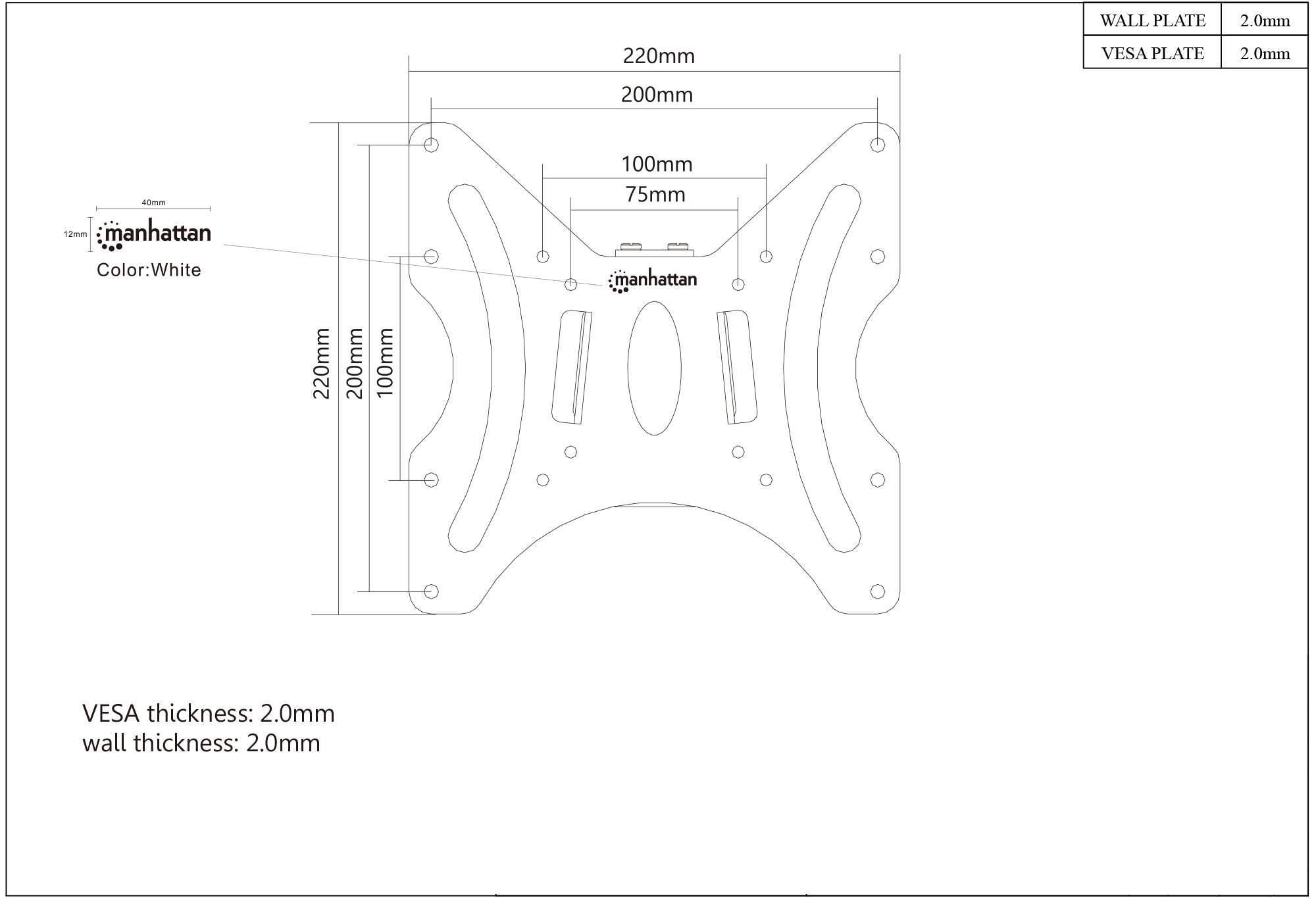 - Supporta una televisione con standard VESA 75 x 75, 100 x 100, 200 x 100 o 200 x 200