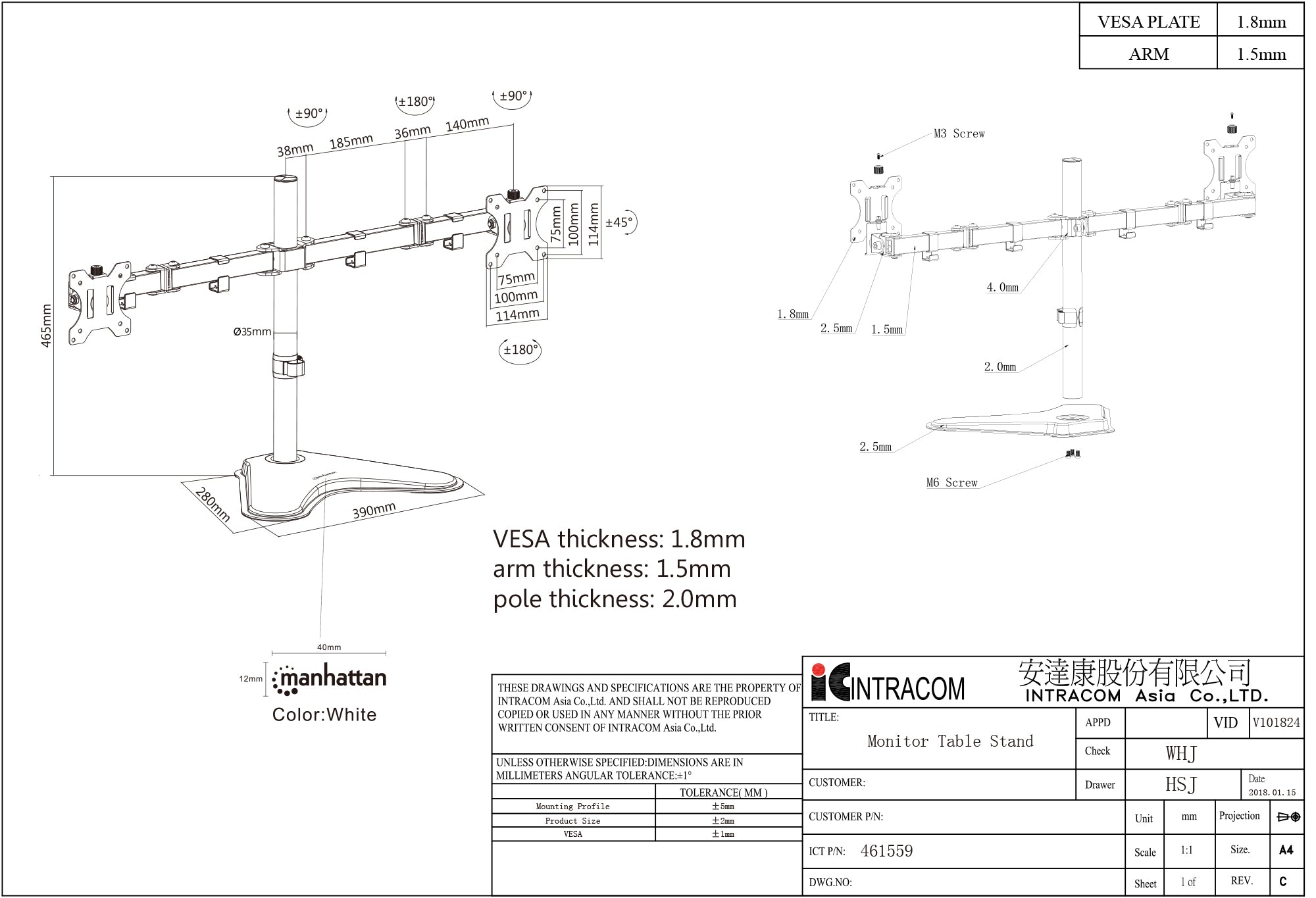 - Conforme agli standard VESA - Supporta in modo sicuro due monitor LCD da 13" a 32"