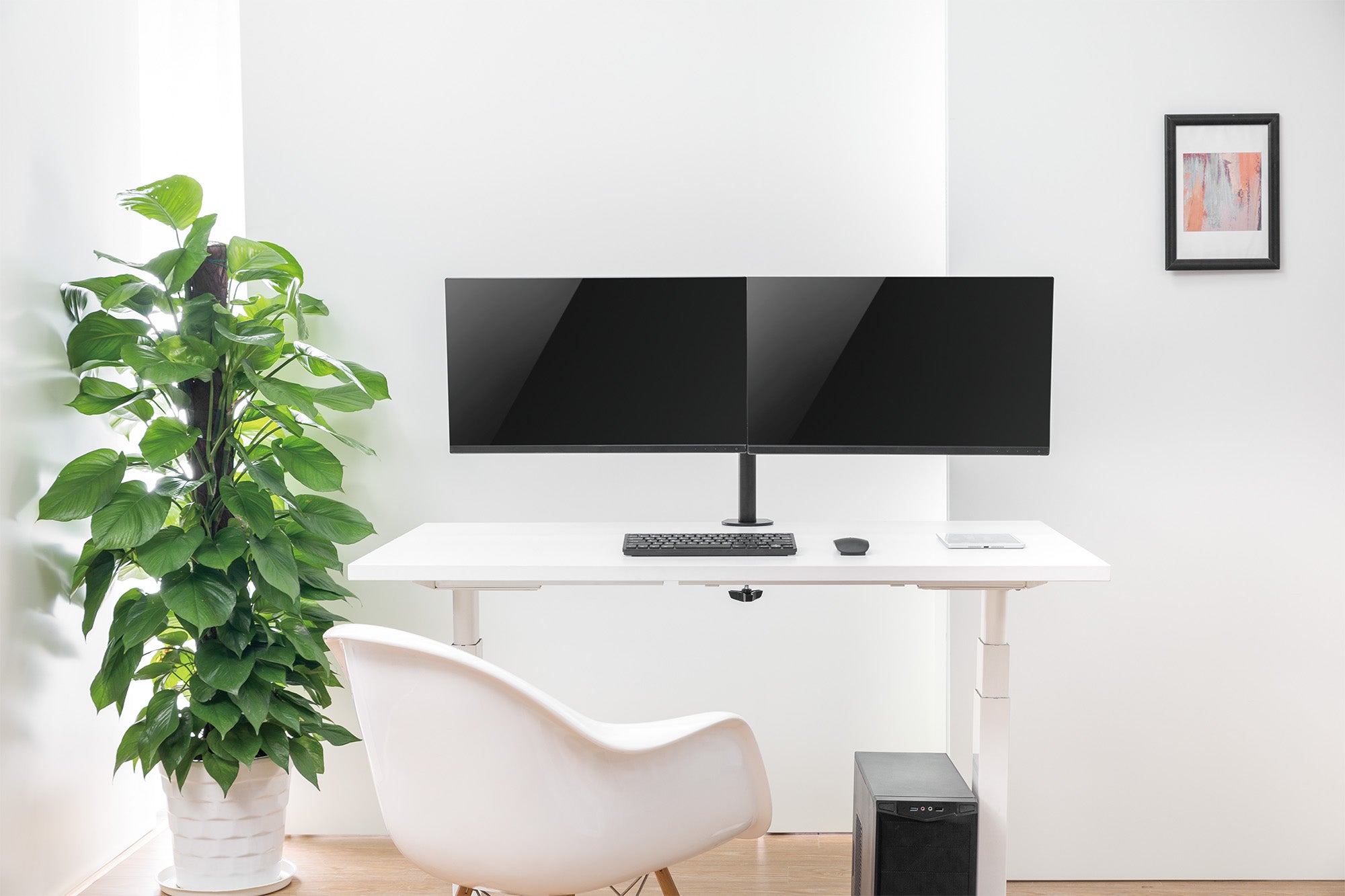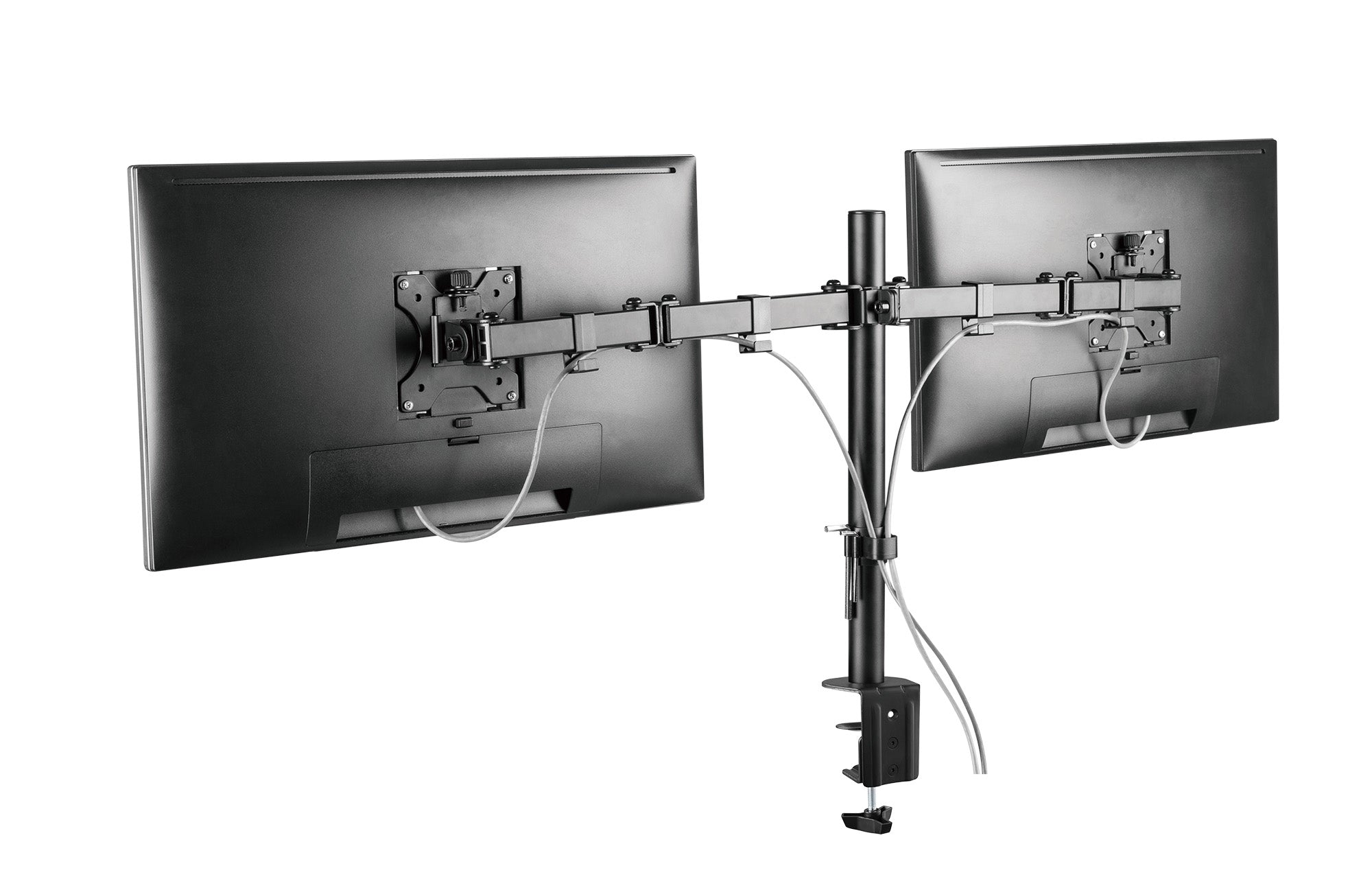 - Supporto universale per due monitor con doppio snodo di regolazione