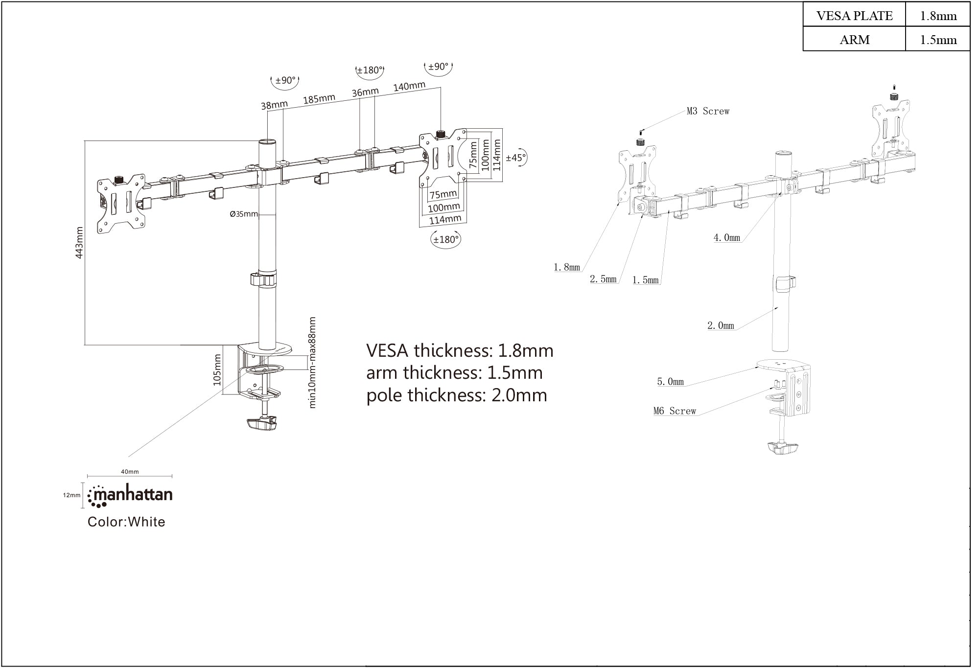 - Supporta monitor conformi VESA 75 x 75 / 100 x 100