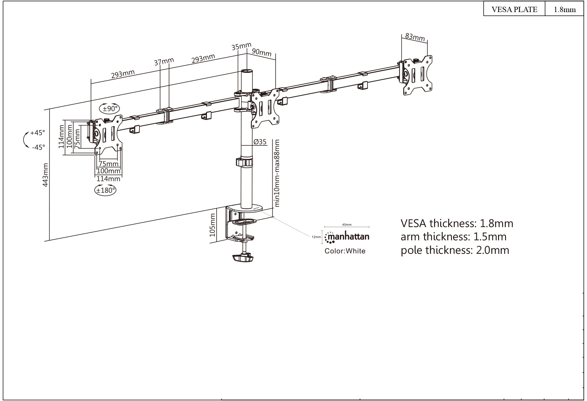 • Conforme agli standard VESA - Supporta in modo sicuro tre monitor LCD da 13" a 27"