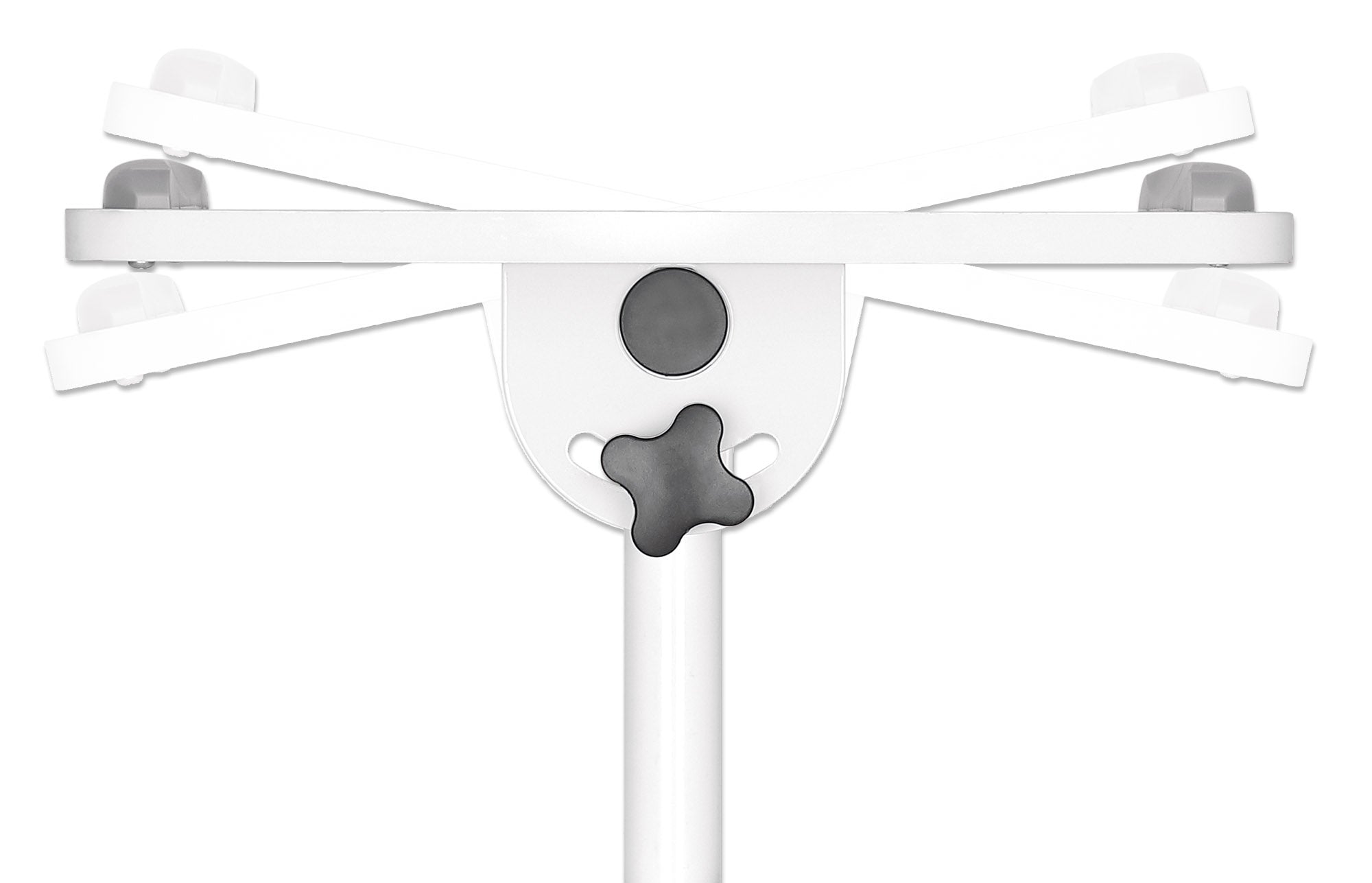 Due mensole per dispositivi fino a 10 kg ciascuno, inclinazione -/+ 35°, rotazione 360°, altezza regolabile, grigio/bianco