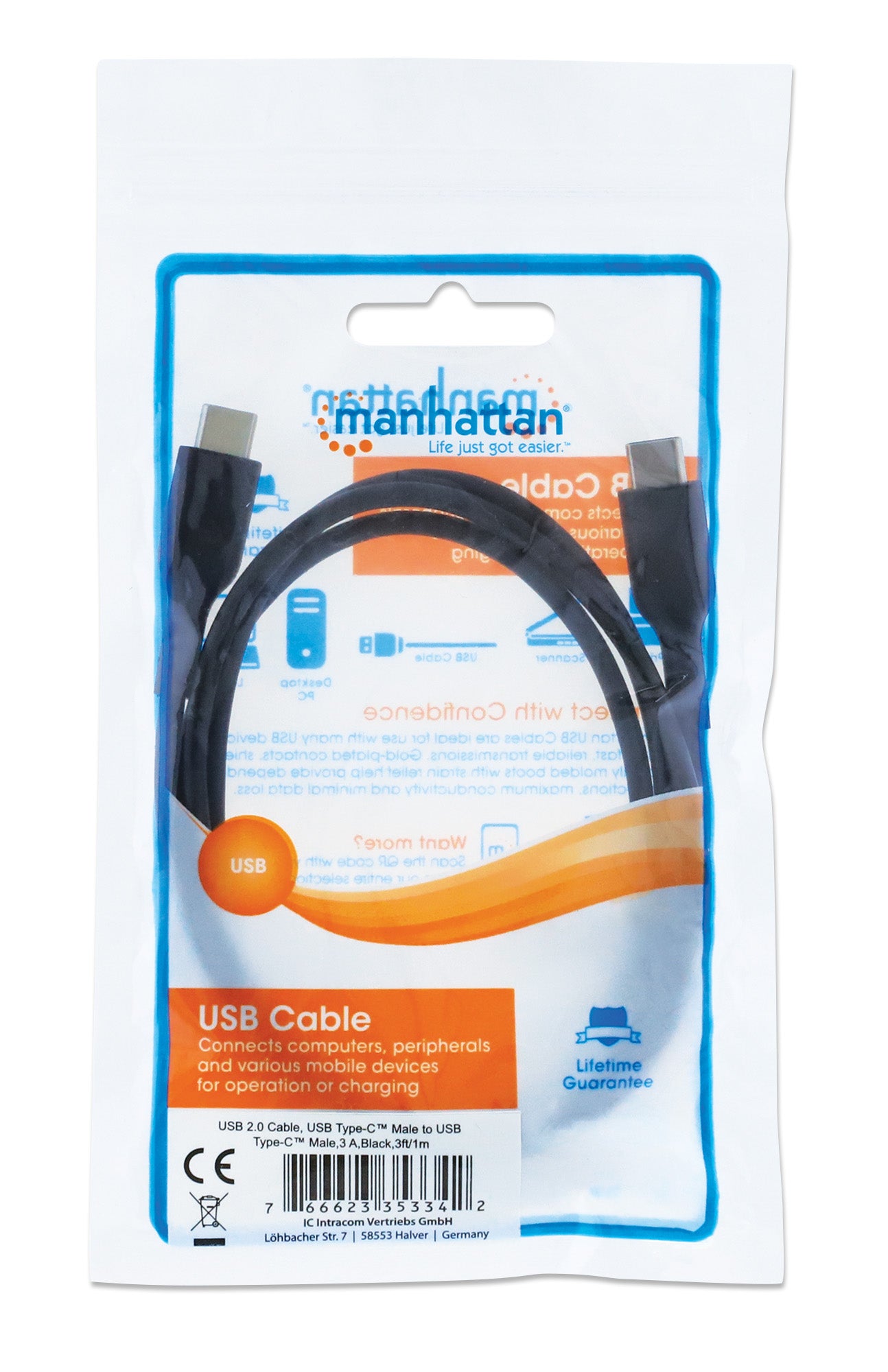 USB 2.0, Tipo C Maschio / C Maschio, 480 Mbps, 60 W / 3 A, 1 m, colore nero
