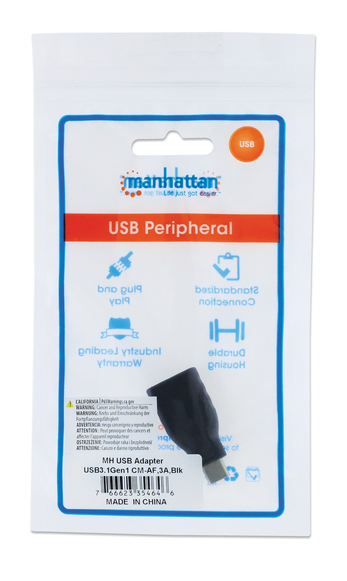USB 3.1, Gen 1, Tipo C Maschio / Tipo A Femmina, 5 Gbps, colore nero