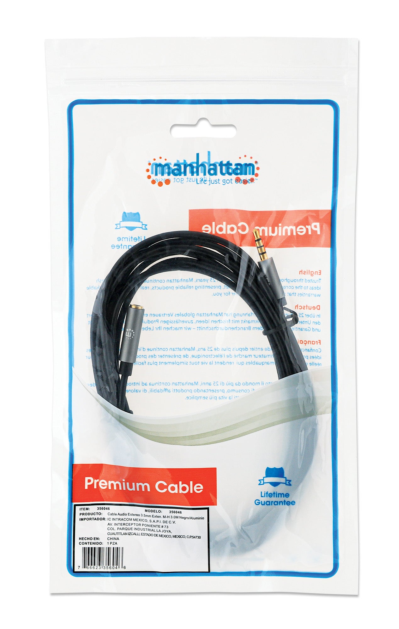 3,5 mm maschio a 3,5 mm femmina, 1 m, contatti dorati, design sottile, nero/grigio