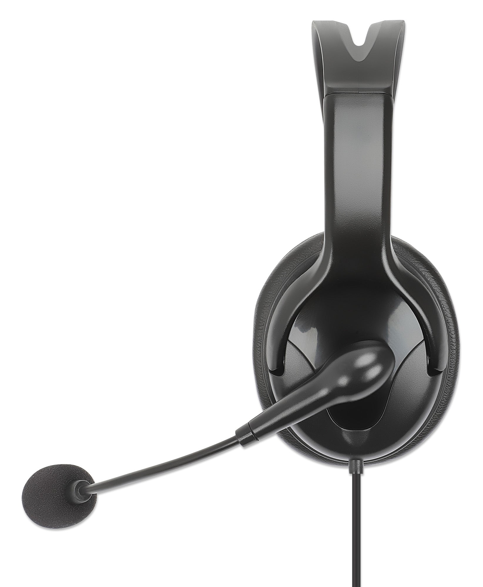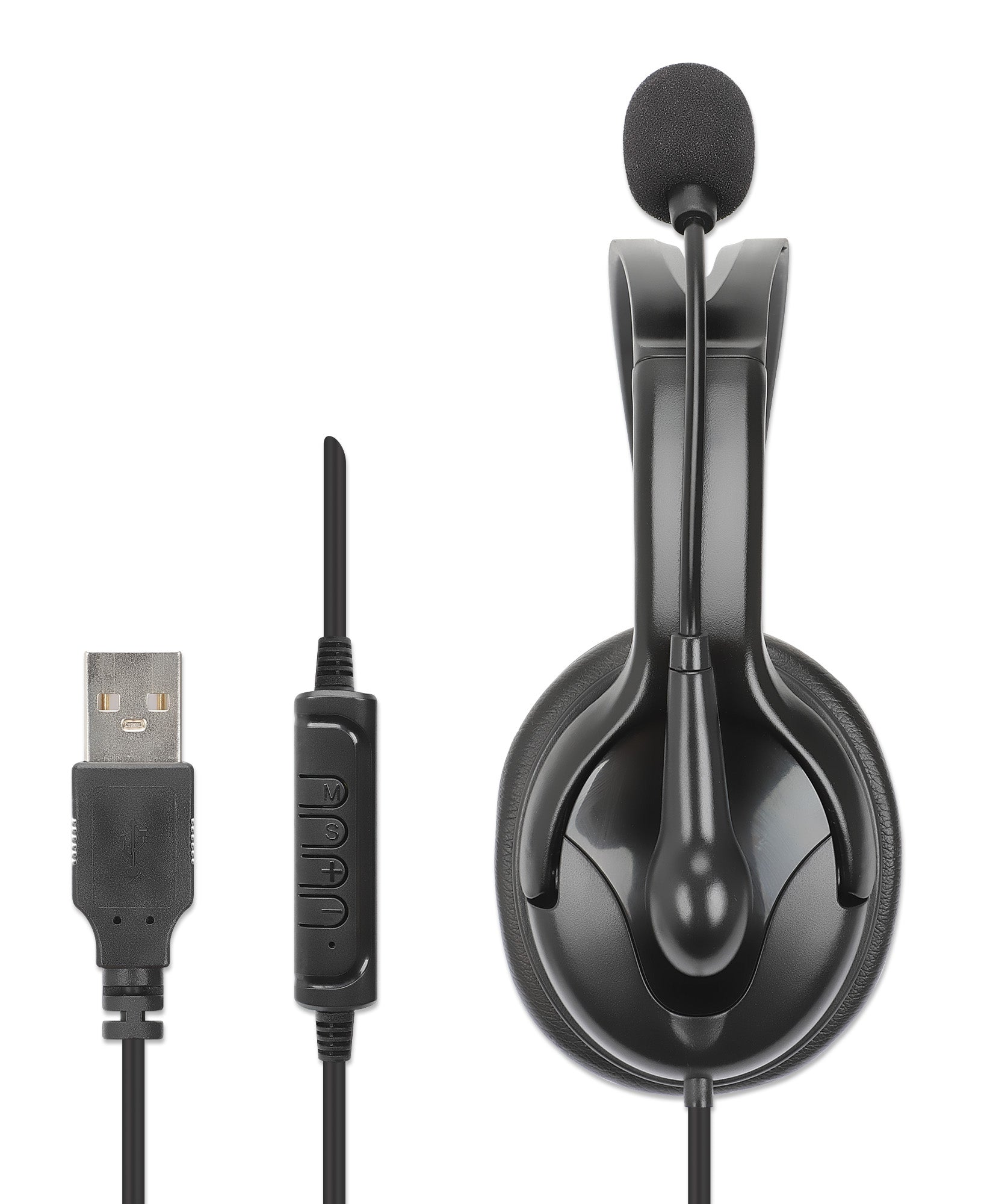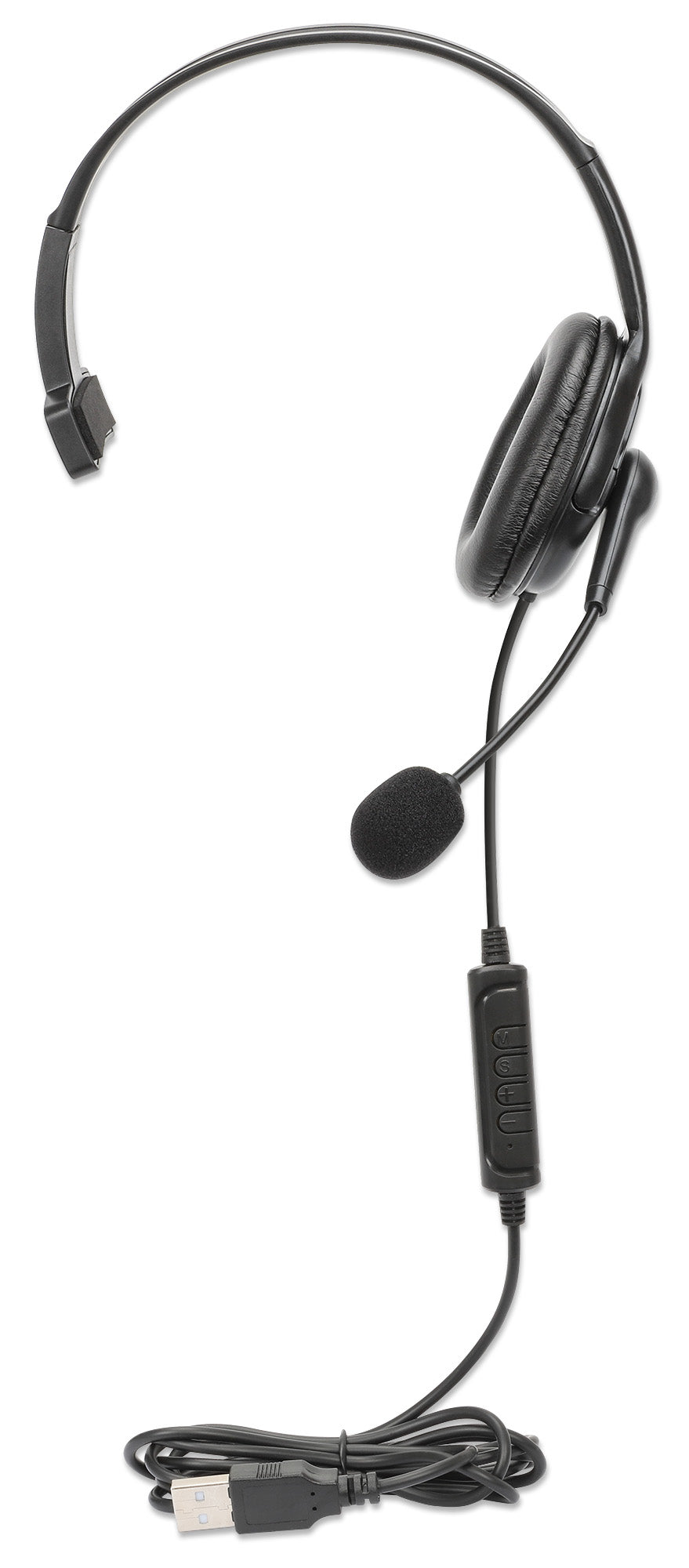Design over-ear su un lato, cablato, connessione USB-A, controllo volume e disattivazione audio in linea, microfono regolabile, nero