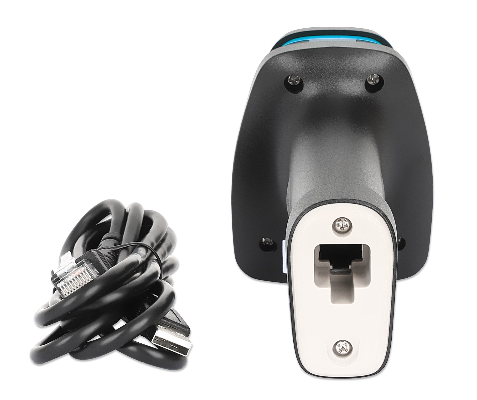 Profondità di scansione fino a 450 mm, cavo USB-A rimovibile da 1,8 m, 60 scansioni al secondo, 100.000 Lux, palmare, alloggiamento robusto con grado di protezione IP52, nero
