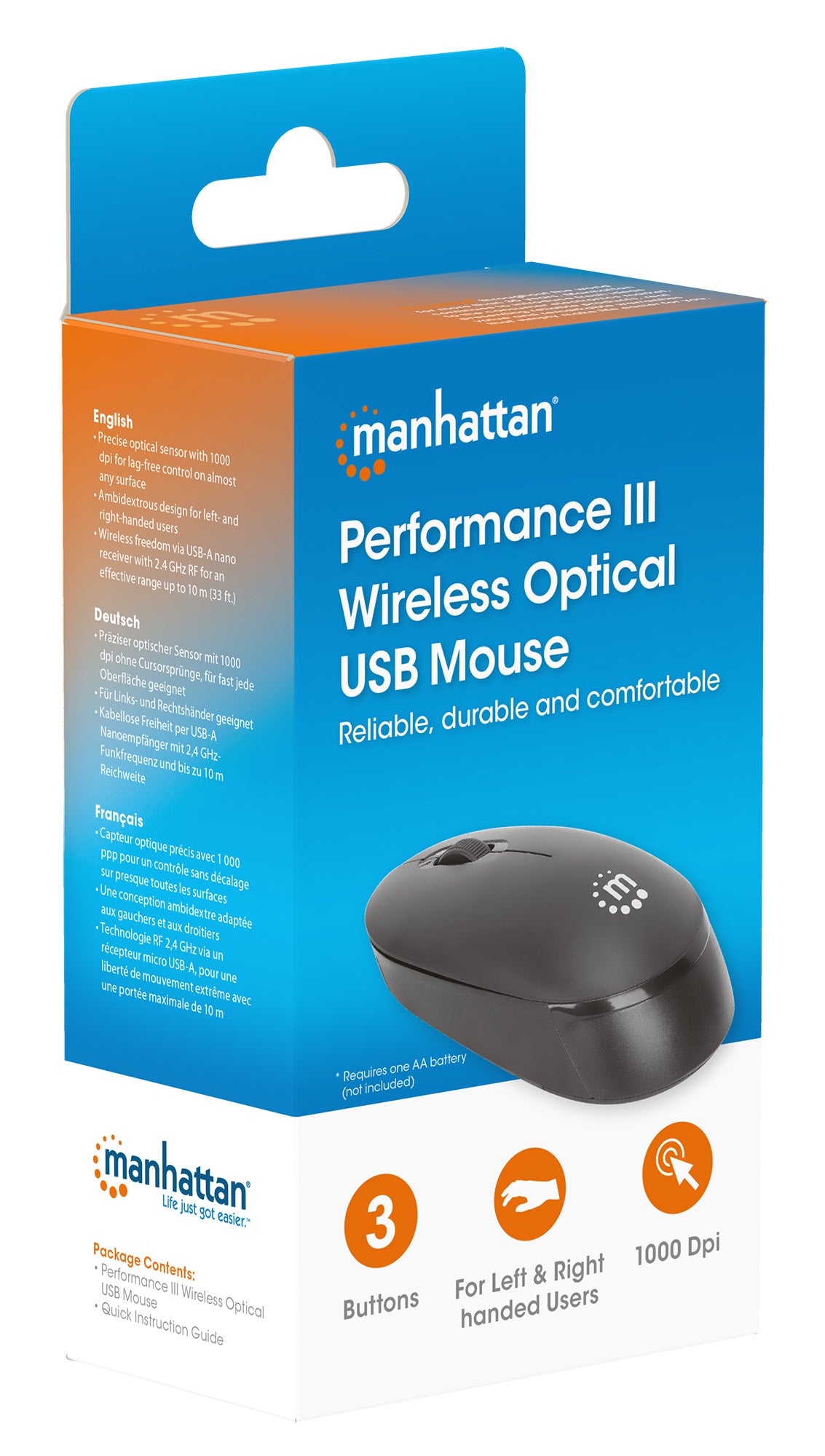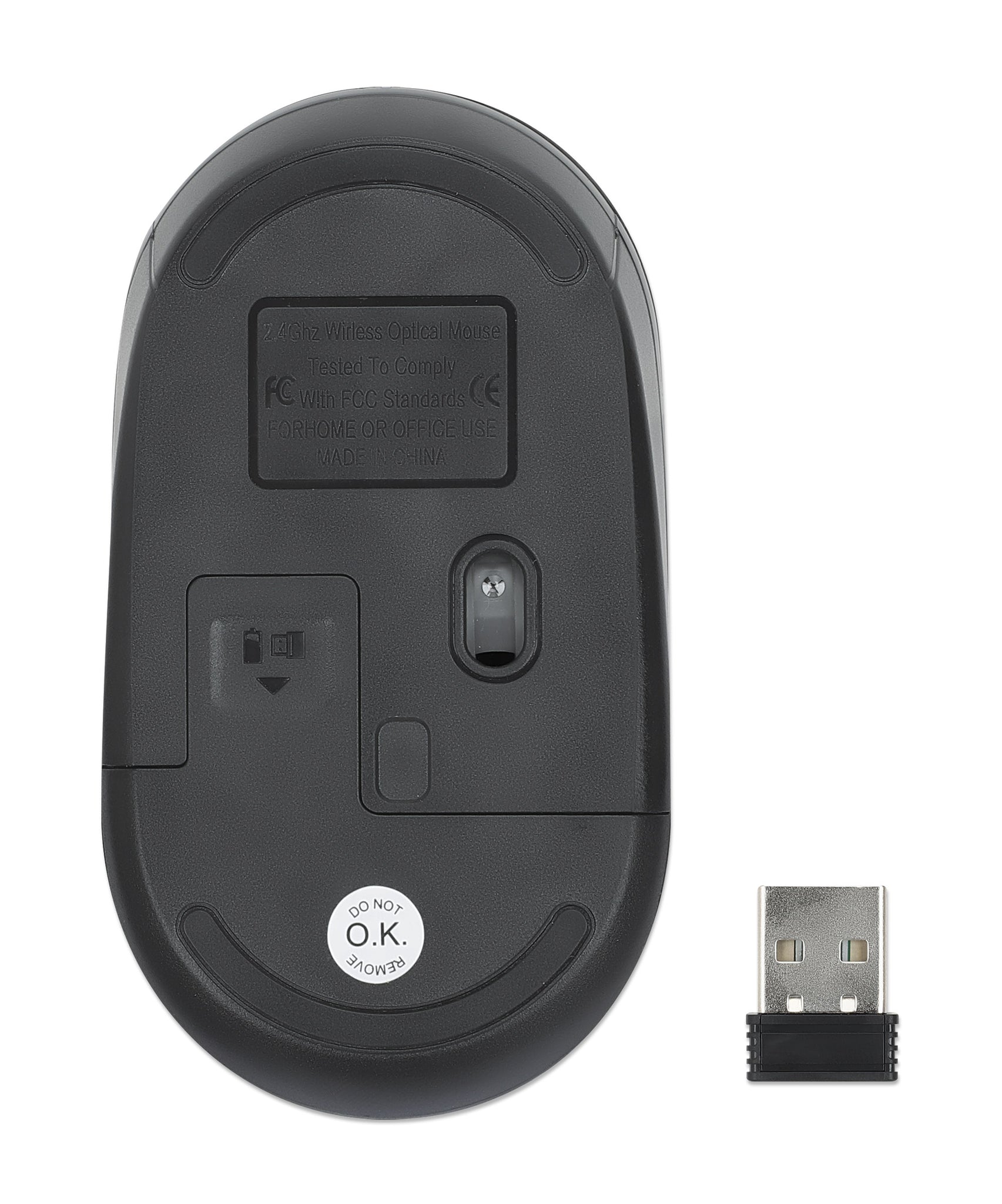 Ricevitore Nano USB-A Wireless 2.4 GHz, tre tasti con rotella scroll, 1000 dpi, ambidestro, nero
