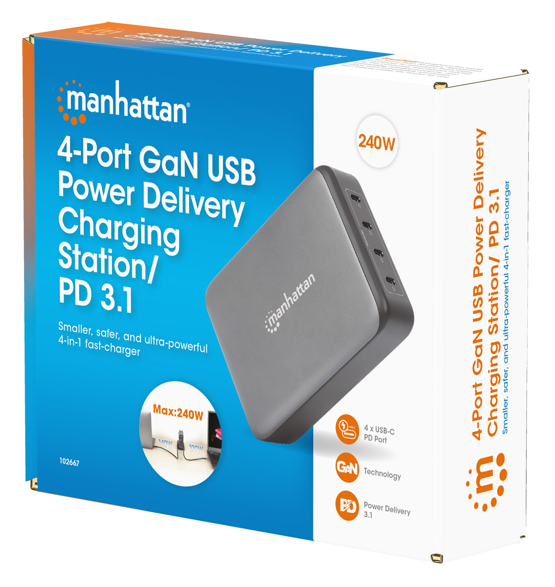 • Stazione di ricarica USB Power Delivery 4 porte GaN 240 W / PD 3.2